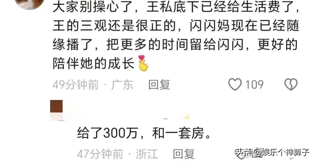 這幾天,網上爆料思聰私下已經給了黃一鳴撫養費以及一套房子,就是爲了讓女方衣食無憂,有精力和時間照顧孩子。