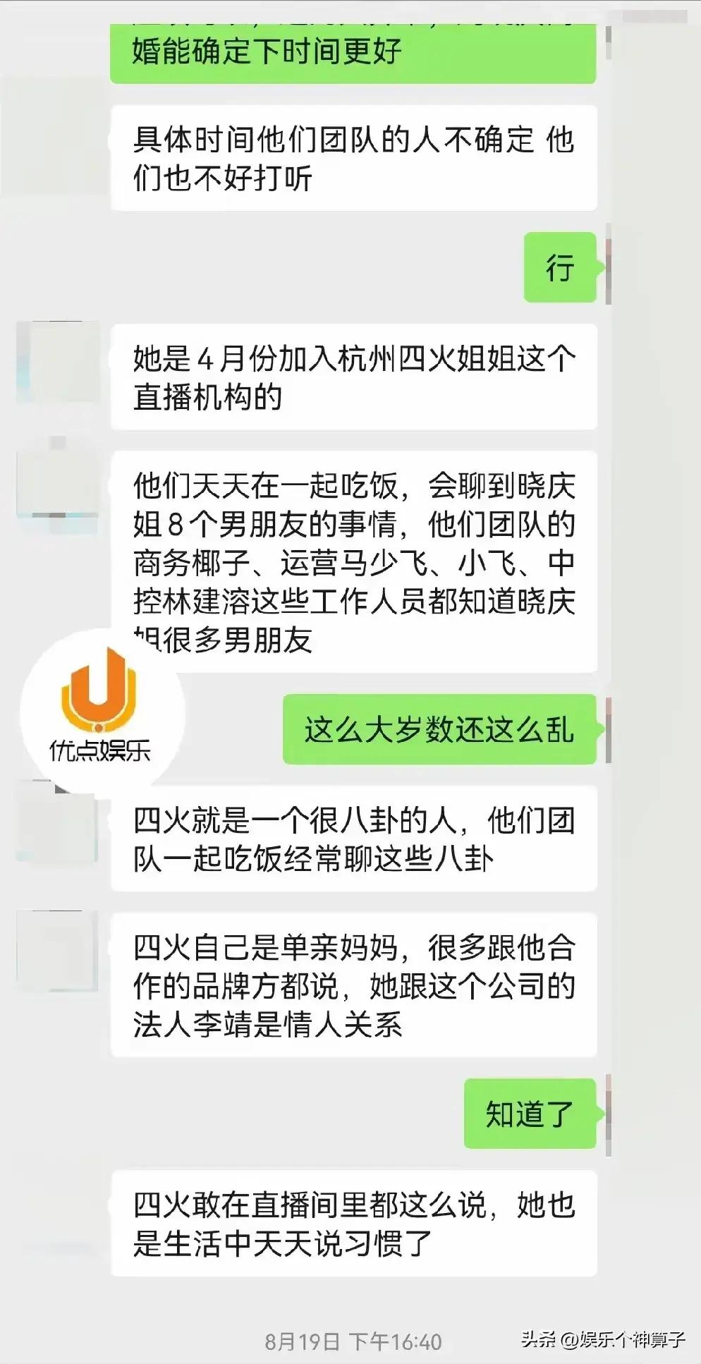 八卦媒體還曬出與知情人的聊天截圖,內容中提到了離婚以及八個男友的事情。