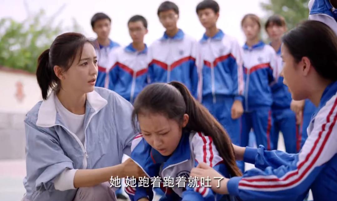 畫面中,物理老師安顏(佟麗婭 飾)和其他老師正帶着學生跑操。