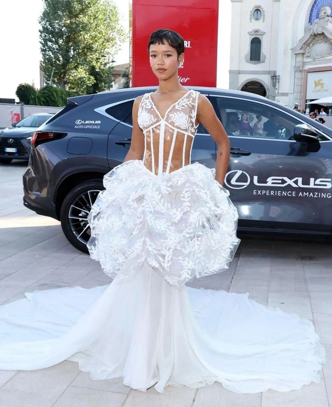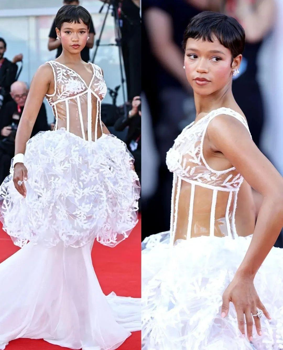 本屆威尼斯電影節上的她也不打安全牌,帶來尺度不小的造型。