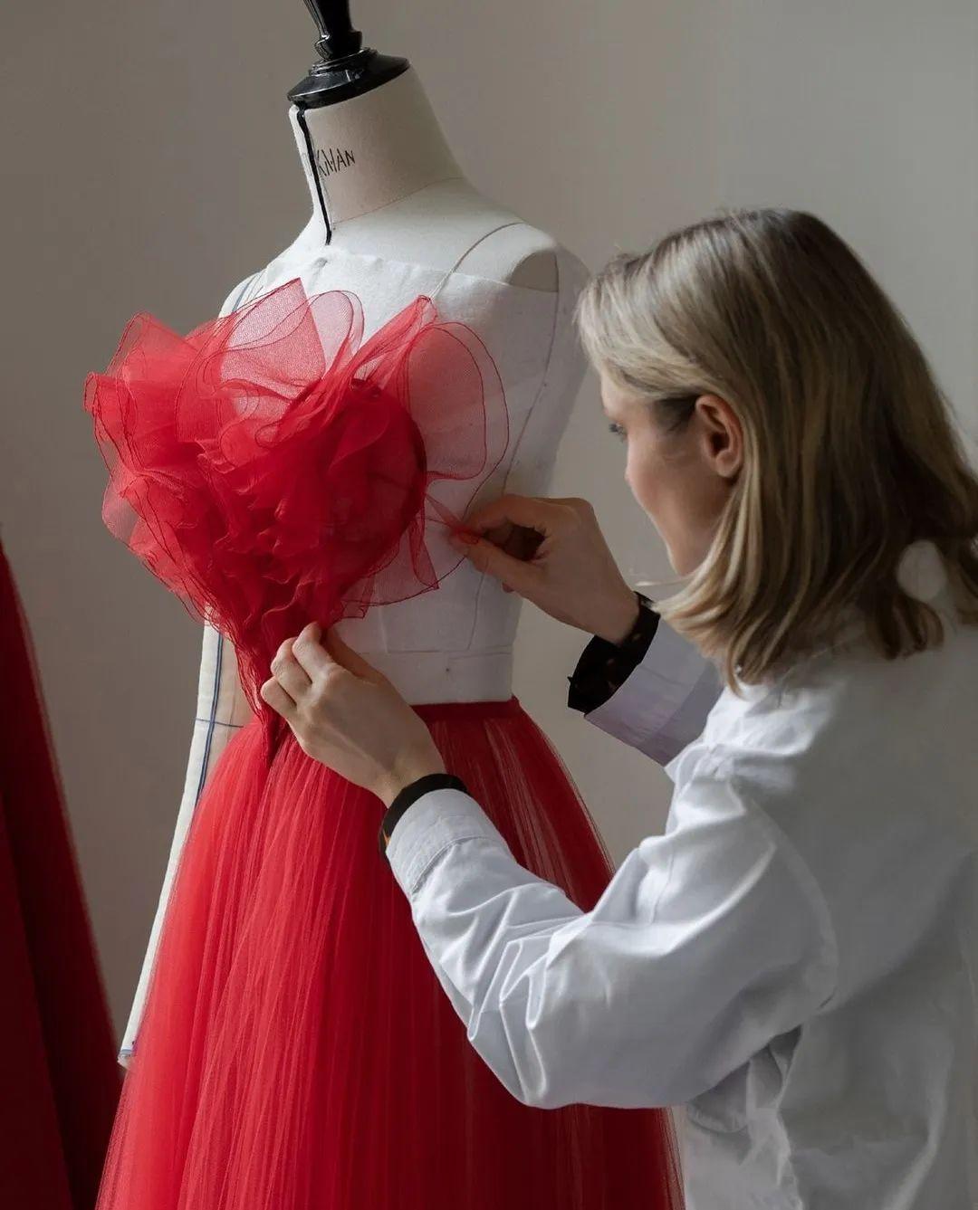 定製的Tamara ralph禮服,收腰的設計顯得腰細,而垂墜的裙襬又很飄逸,仙氣十足。