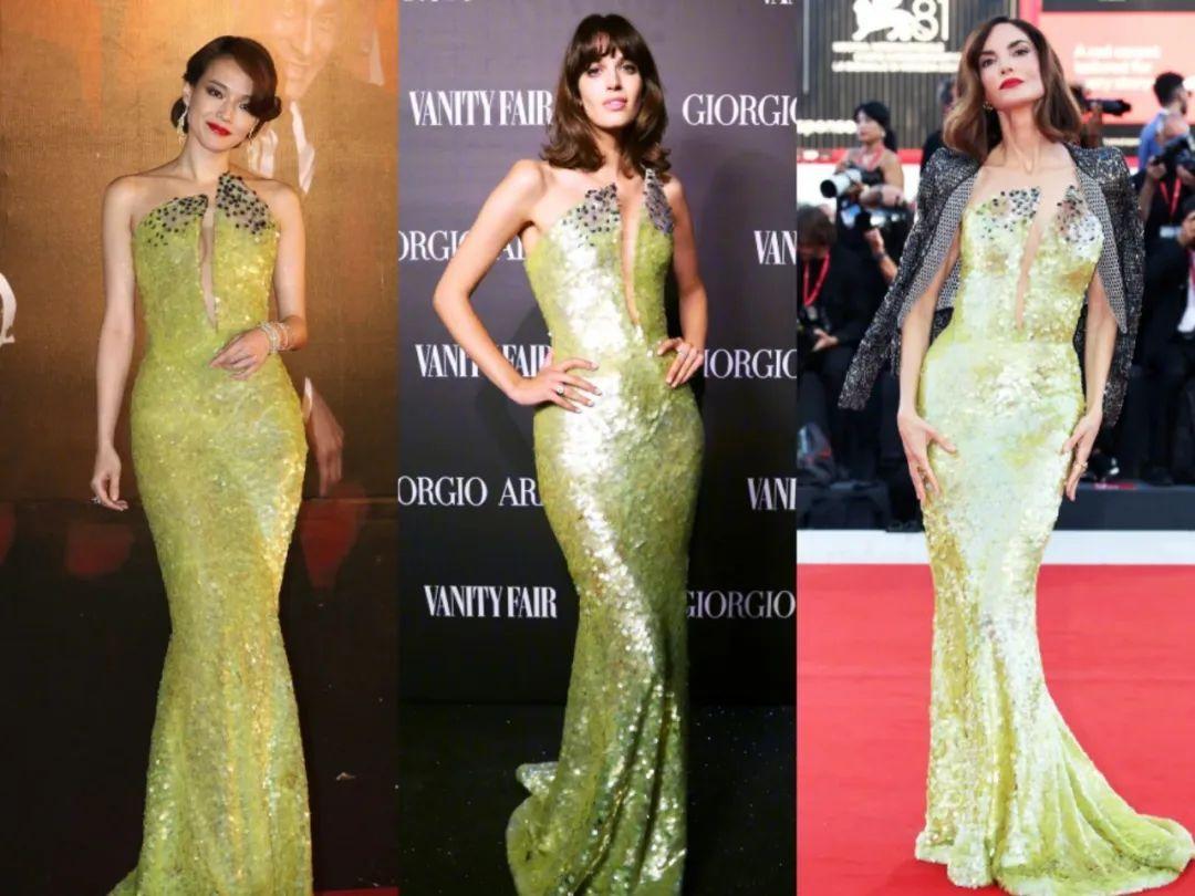 西班牙超模尤金妮婭·席爾瓦以一身獼猴桃色人魚裙亮相,和舒淇還有意大利女星賴求華隔空撞衫。