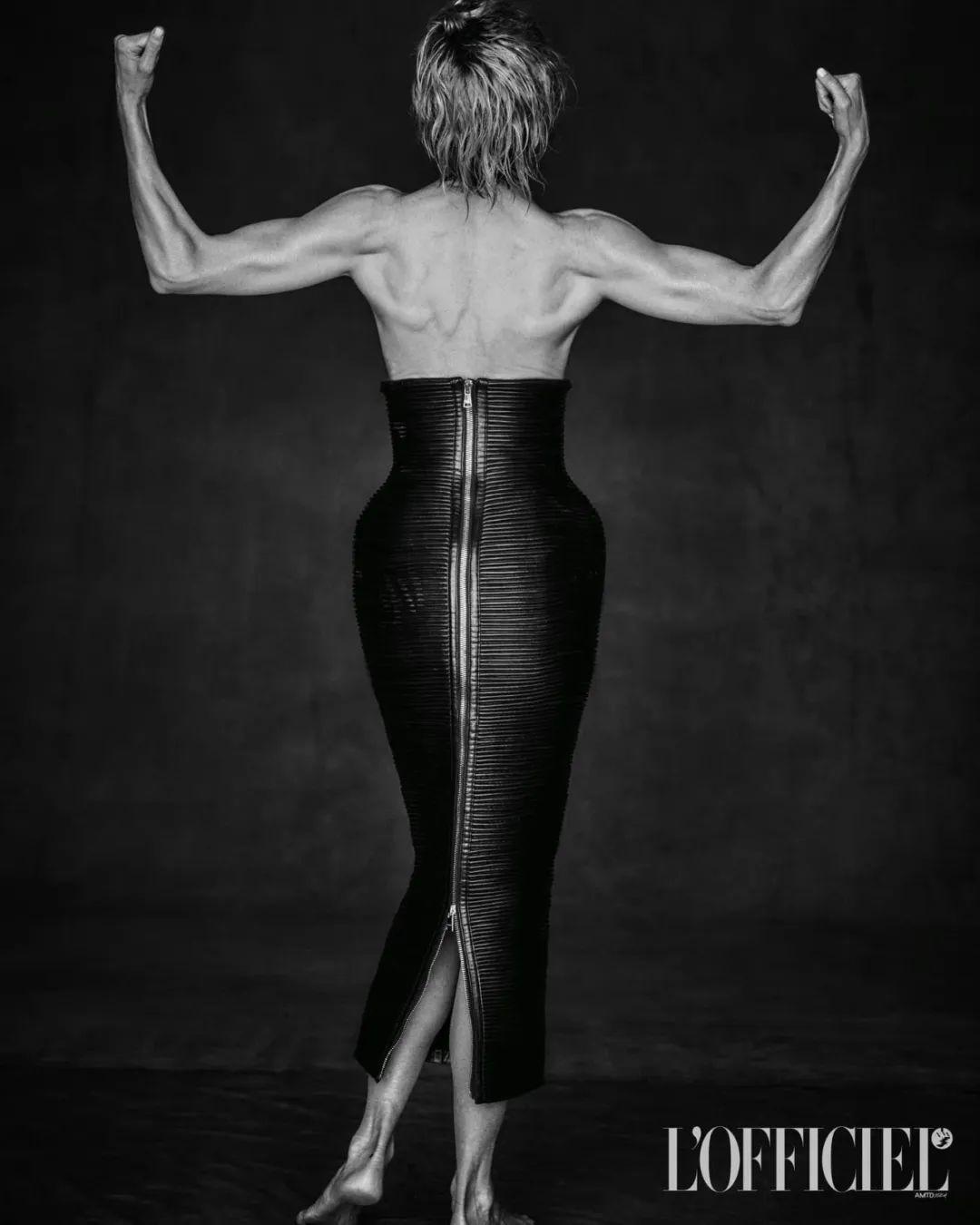 最新雜誌的背影大秀力量感,肌肉線條強得令人瞠目,與纖細的腰形成鮮明對比,很難聯想到會是她。
