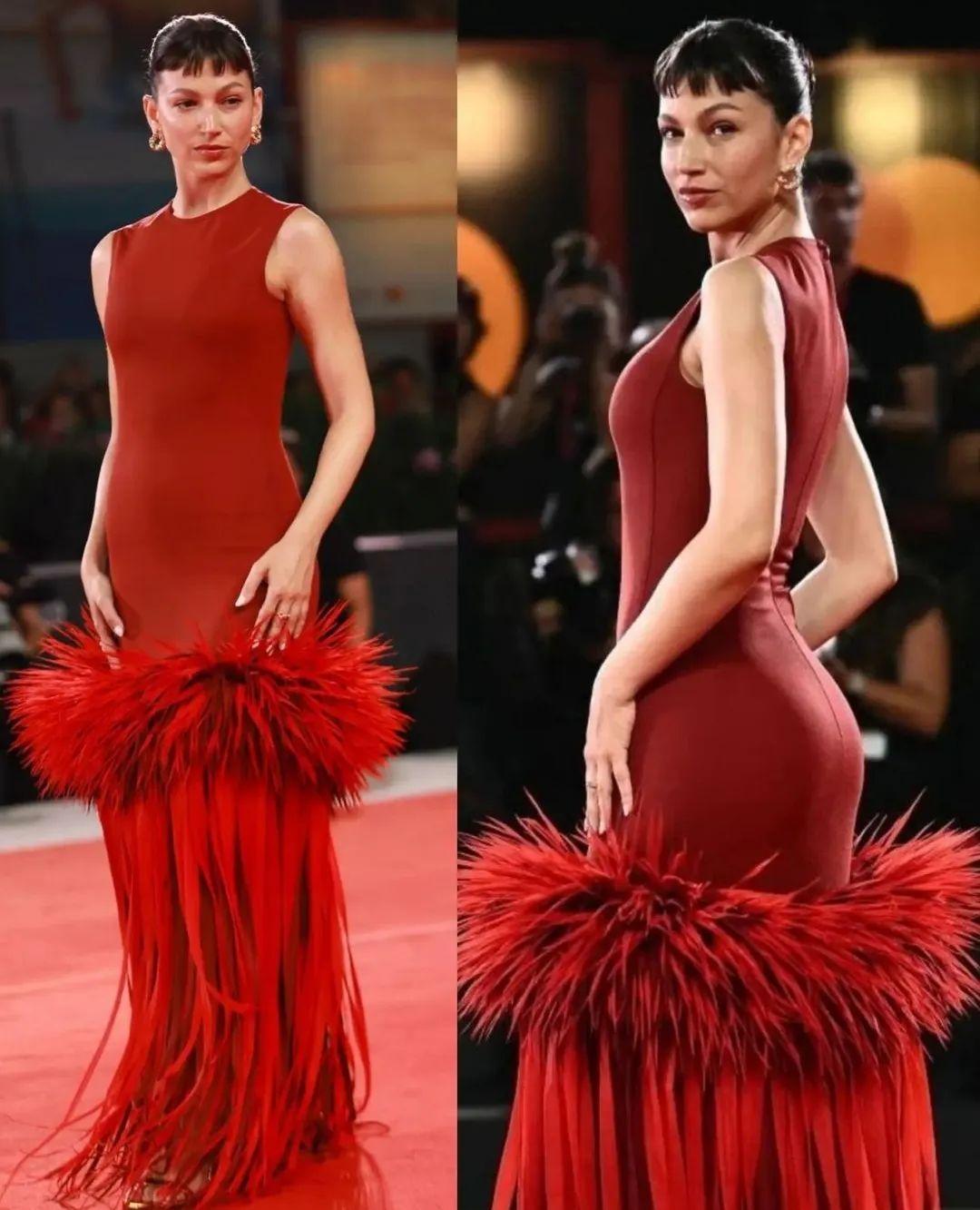 她本人是威尼斯電影節的常客,2021年的造型就很絕,紅絲襪包裹的大長腿,看起來性感與美麗結合。