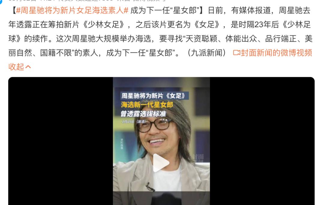 早在2023年6月22日,周星馳就借慶祝61歲生日的機會,在社交平臺宣佈將開啓新電影《少林女足》角色的全球海選。
