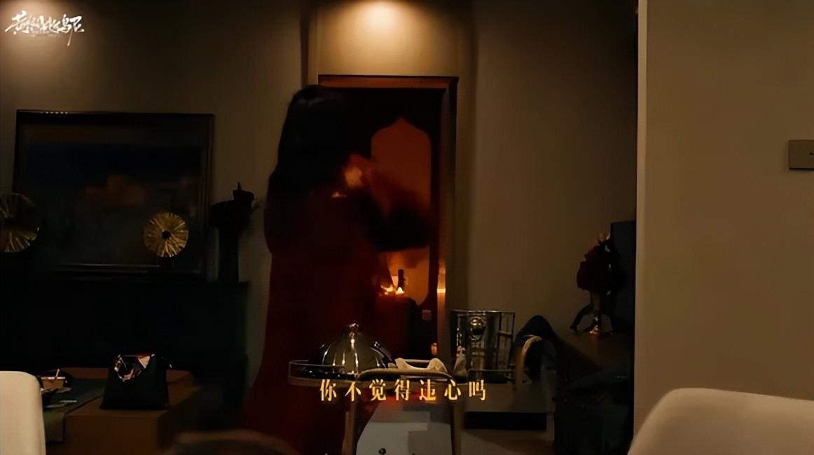 雖然拍得很含蓄,但仔細看能看到臥室裏紅色的燈光、鏈條,而且富婆出來拿酒,沒有拿杯子就進去了。