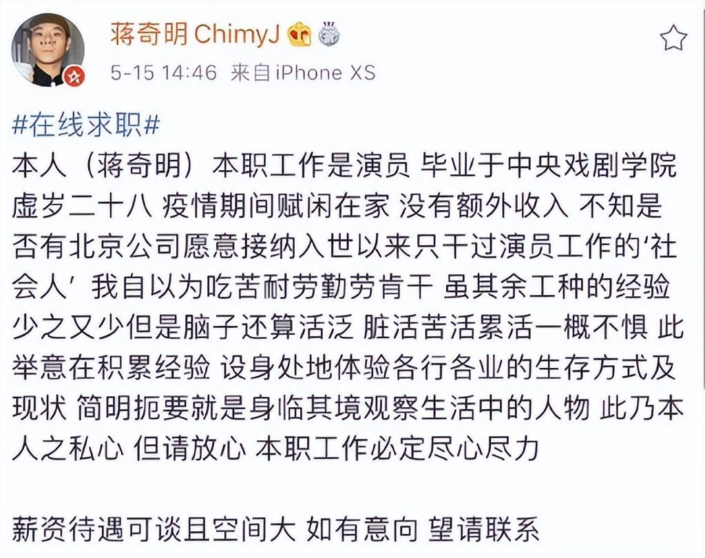 很少有人知道,那時他在微博發過“求職廣告”,在便利店當過服務員,一個月能好歹能掙幾千塊。