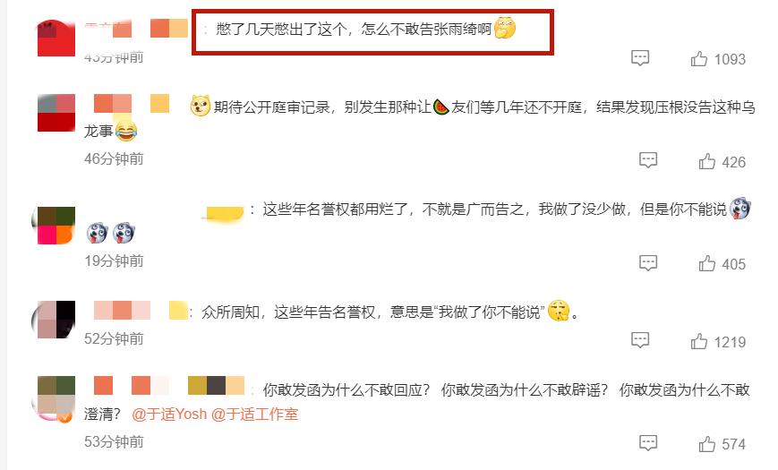 於適工作室發聲明!否認包養和做鴨,將起訴10名網友侮辱誹謗