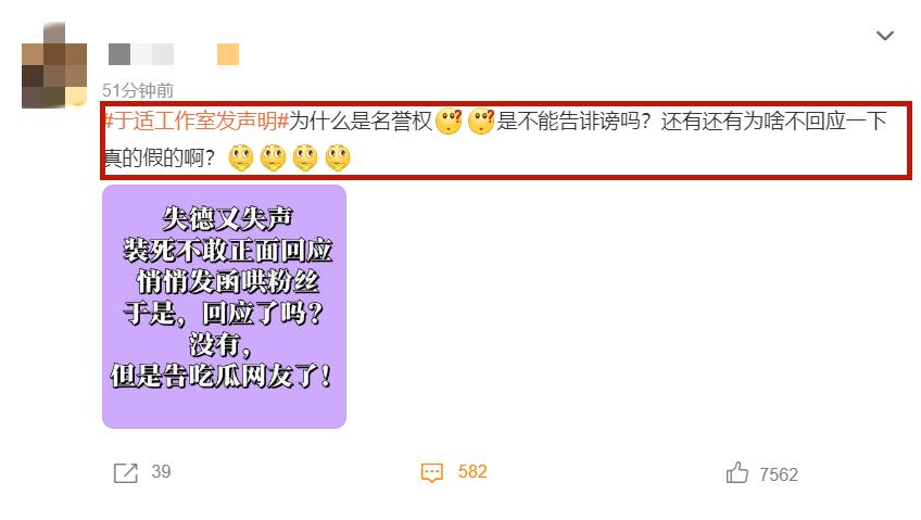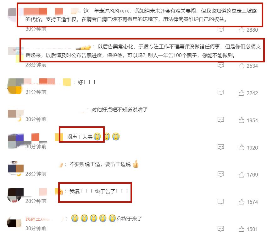 隨着於適工作室發佈聲明,於適的粉絲喜大普奔,紛紛支持於適告黑,還說他悶聲做大事。