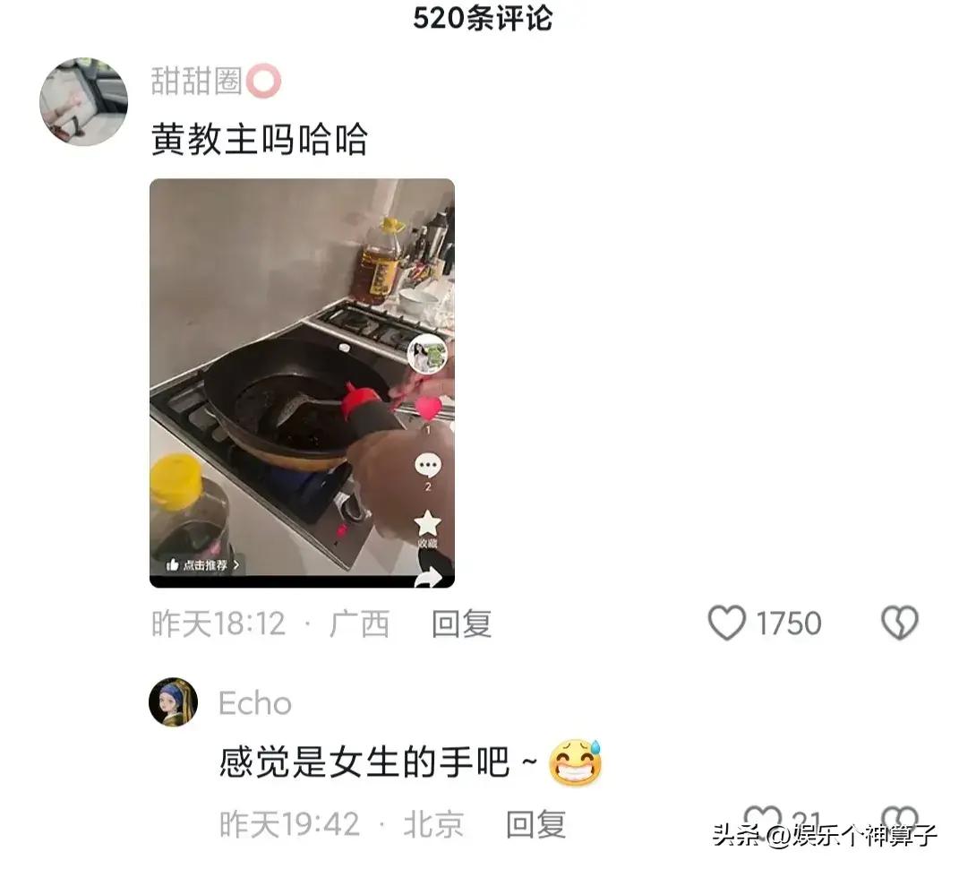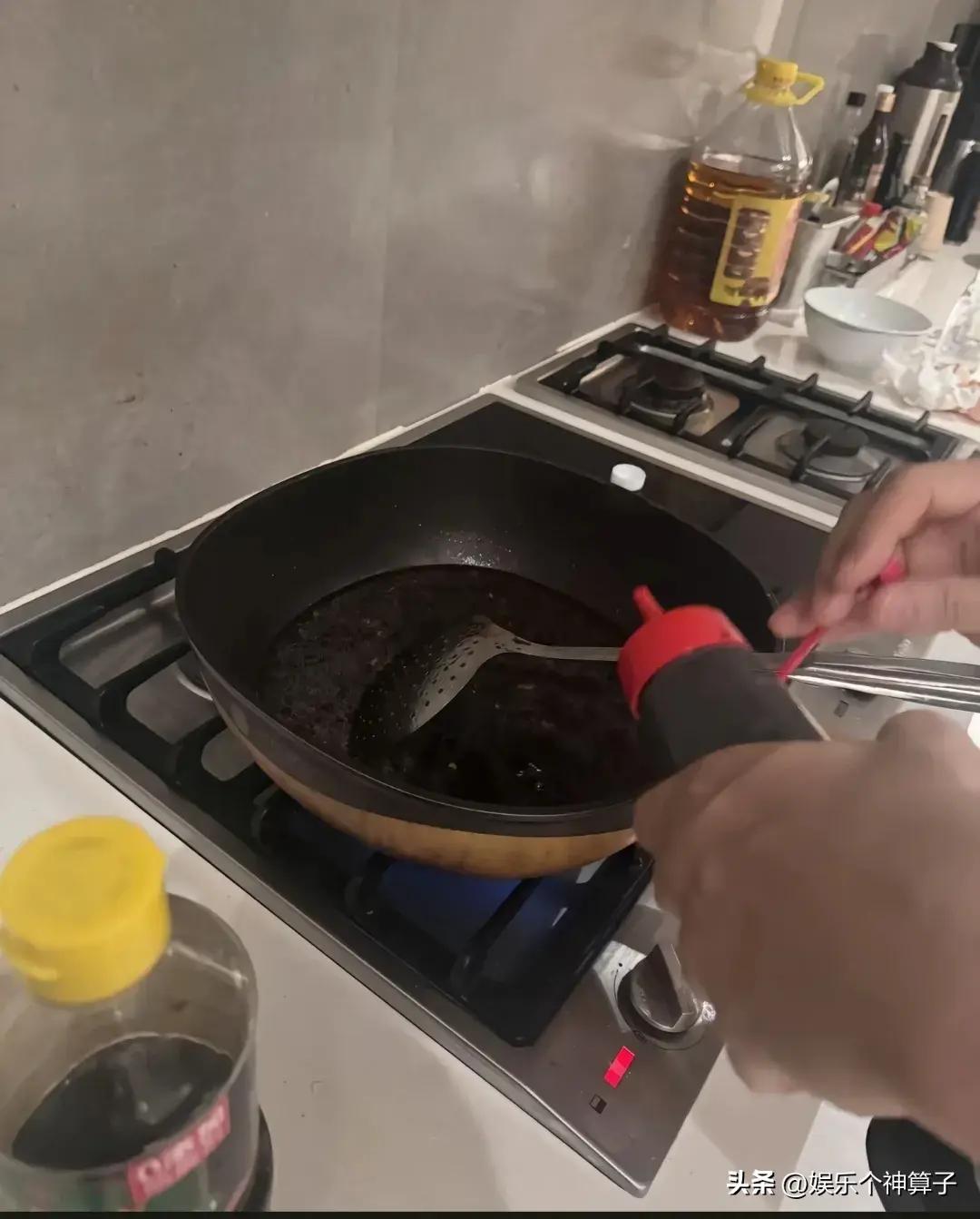 另外,一張做美食的畫面,也被猜測下廚的人是黃曉明,也有人覺得不像是男人的手,畢竟看不到面容,無法辨別。