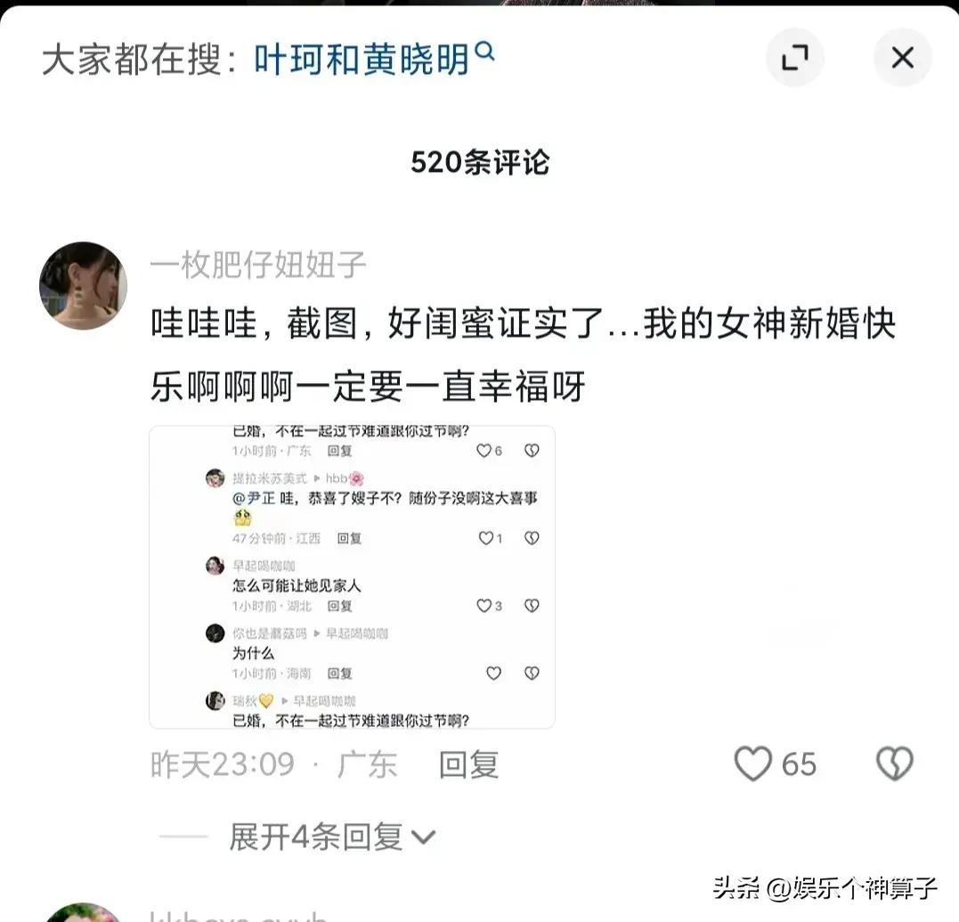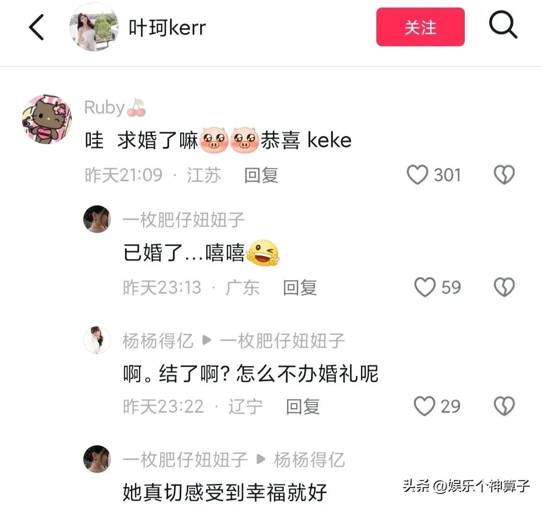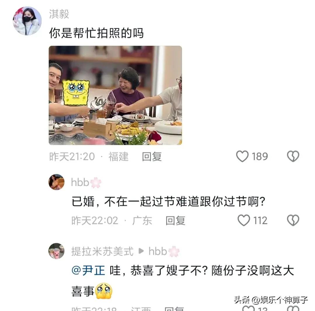 於是,有網友在葉柯評論留言,是不是跟曉明哥一起回家過節,並幫忙拍攝全家福,本人並沒有回覆,然而,好閨蜜卻回應:“已婚,不在一起過節,難道跟你一起過節”,這……,真的算是曝出猛料了。