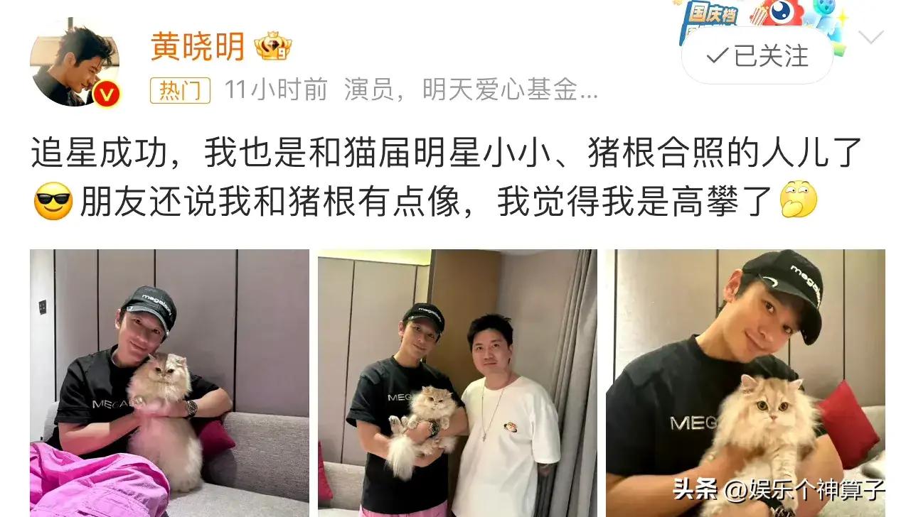 還有人認出葉柯懷裏抱的貓咪,正是之前黃曉明曬出合照中的小小,對比一下,有點看不清楚,大家覺得像嗎?