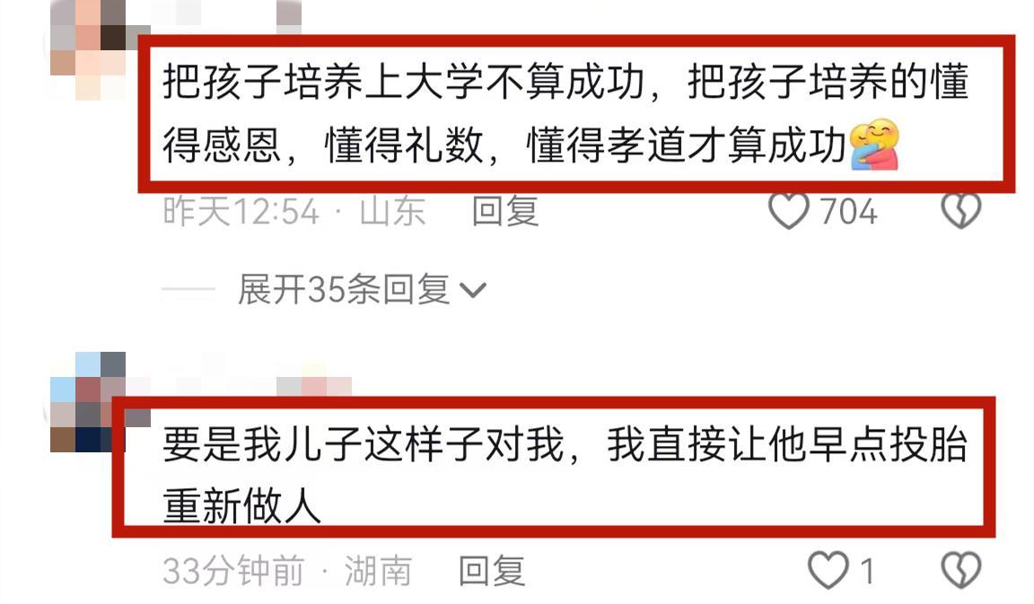 有網友說如果我兒子這樣對我,我直接讓他早點投胎做人。