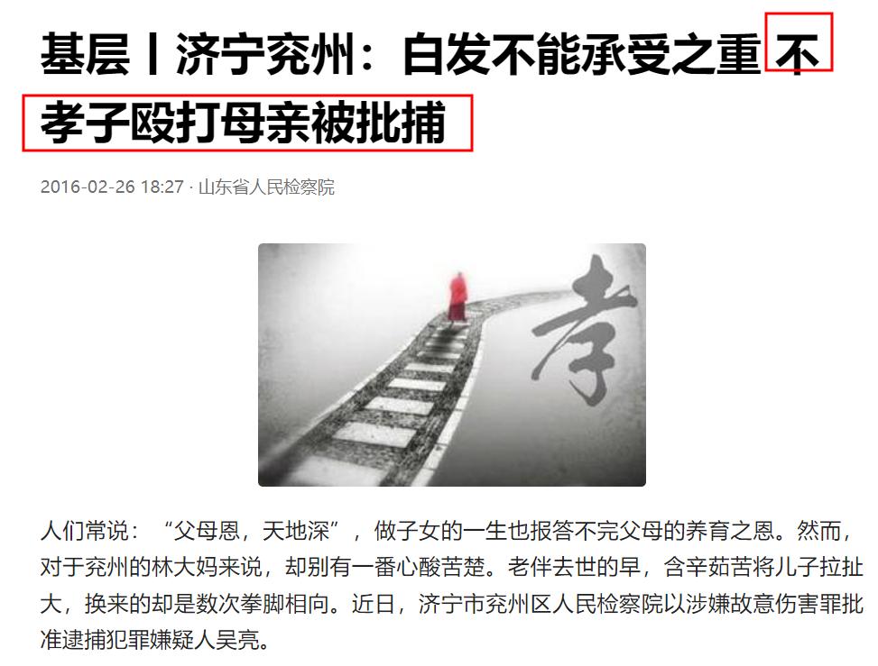筆者搜索過往兒子毆打母親的案例發現,多年前同樣是在濟寧,發生過一起兒子毆打母親事件,最後這個兒子被批捕了。