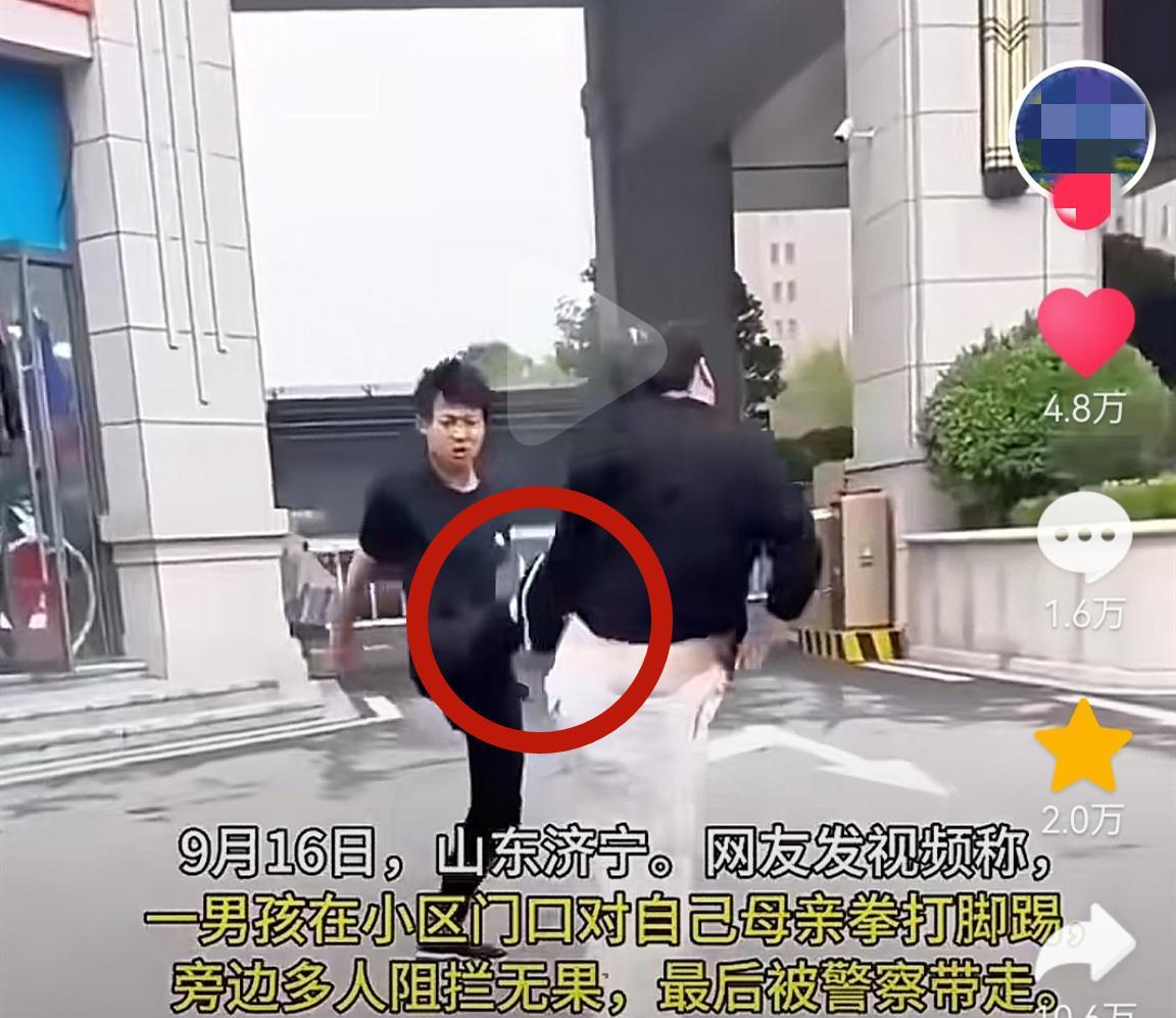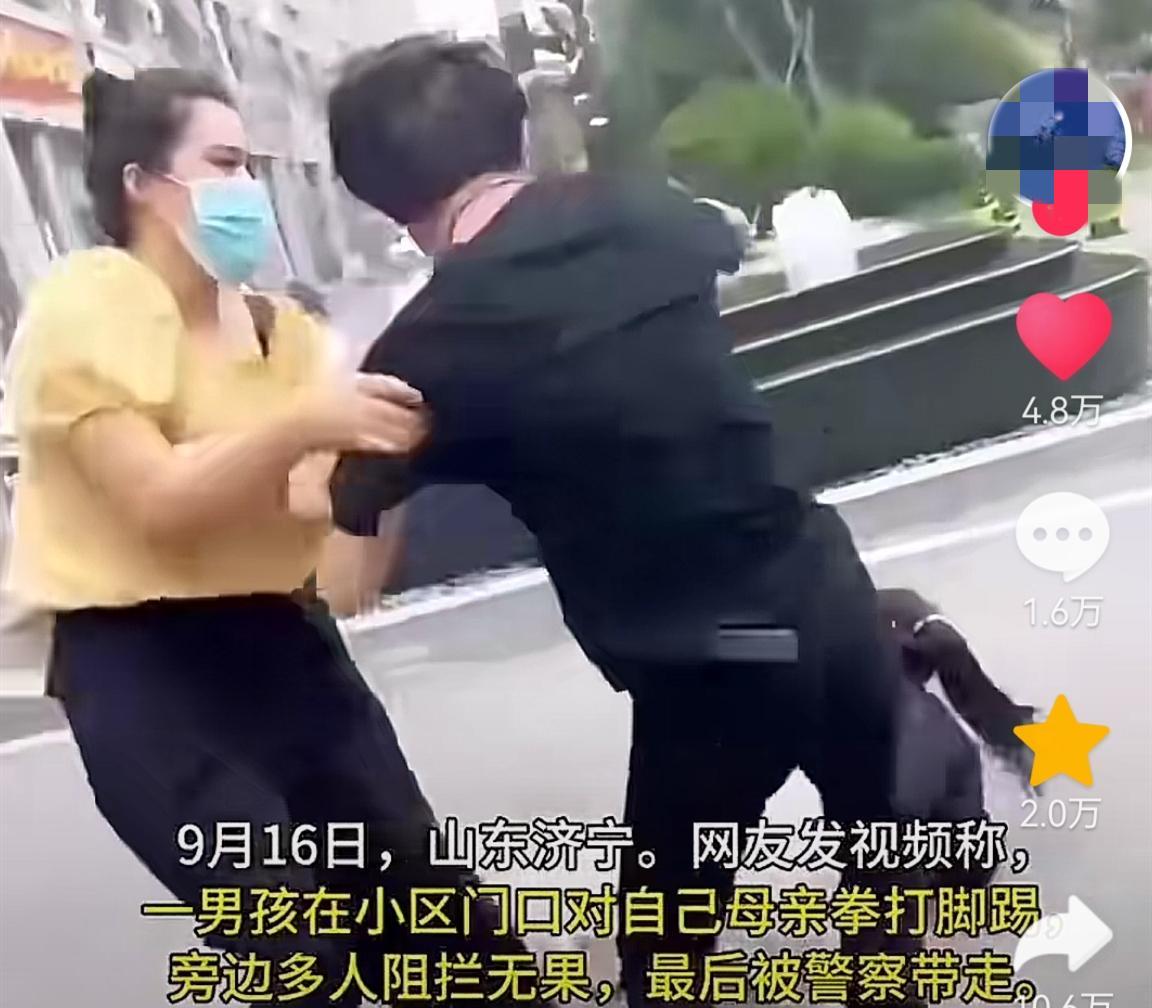 山東一男孩當街毆打母親,原因曝光,警方介入,網友:慣子如殺子