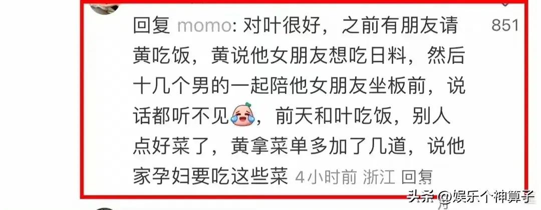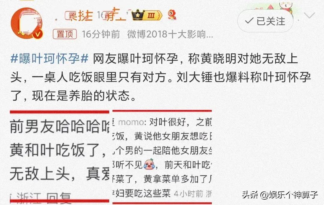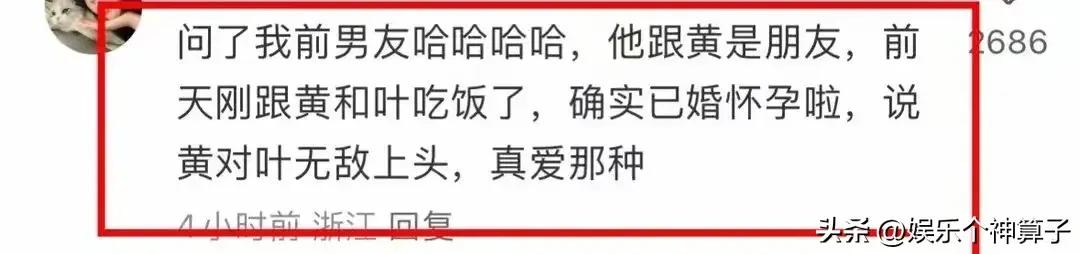 有網友在社交平臺發文,爆料稱自己的男友跟黃曉明是好朋友,前天還在一起喫飯,得知葉柯確實懷孕了。