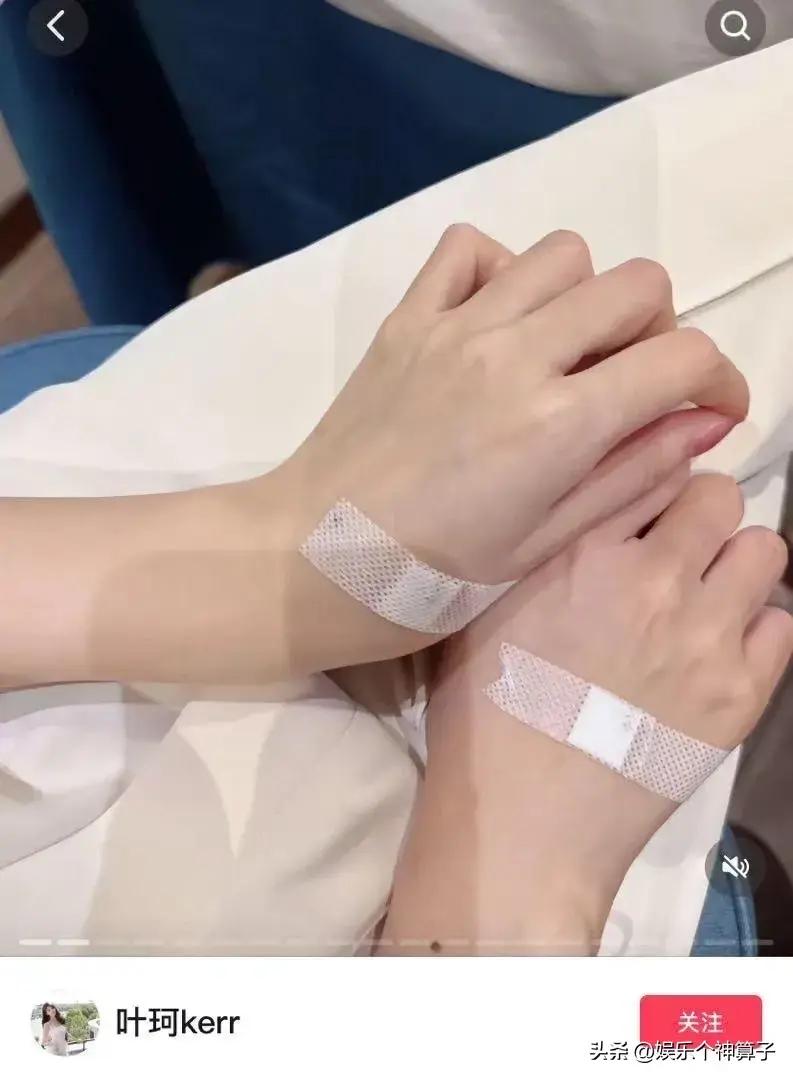 中秋節當天,葉柯曬出一組照片,其中一張是雙手上貼着膠布,當時,就網友提出疑問:這是在做產檢?不過,有人解釋產檢應該在胳膊上抽血,也有人留言,稱自己就是抽的手背,看的一頭霧水,關鍵是本人沒有回應。