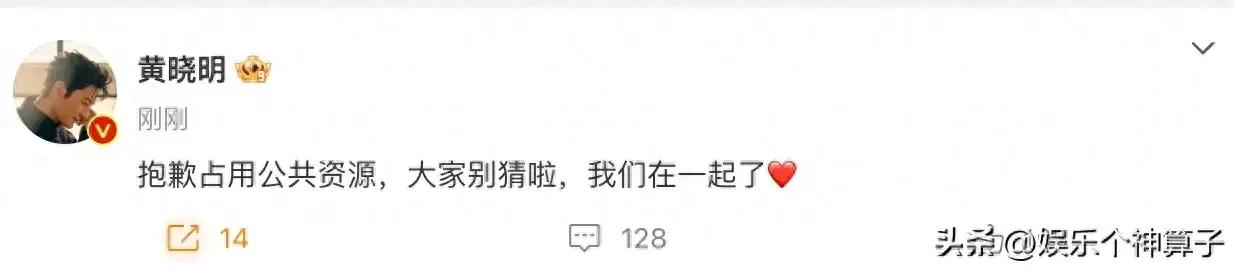 話說,多次傳出戀情,兩人多次被八卦媒體拍到甜蜜畫面,都沒有回應,那麼,爲何會突然官宣戀情呢,大家注意看黃曉明的文案,特意讓大家別猜了,到底什麼情況?