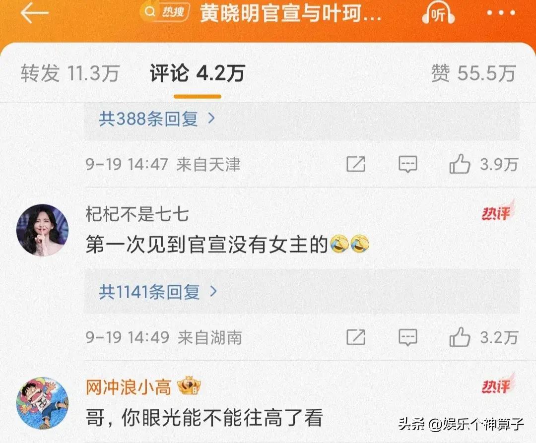 然而,或許是太匆忙,有些大意了,文案中竟然忘記艾特女友,一些網友留言提醒:第一次見到官宣沒有女主的,黃曉明趕緊修改博文,直接喊話葉柯。
