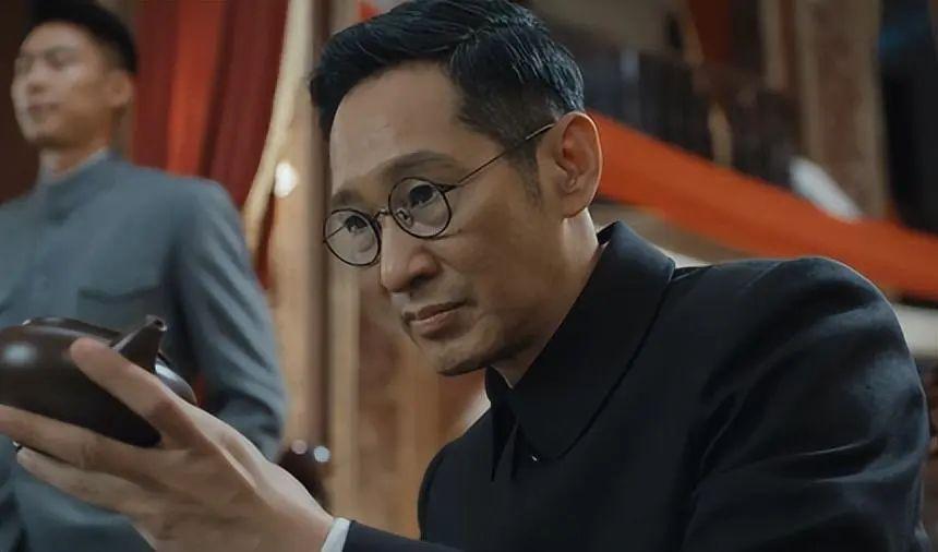 一身黑色的中山裝,頭髮梳得一絲不苟,往那一坐不說一句臺詞,就透出一股壓迫感。
