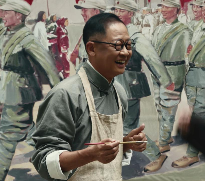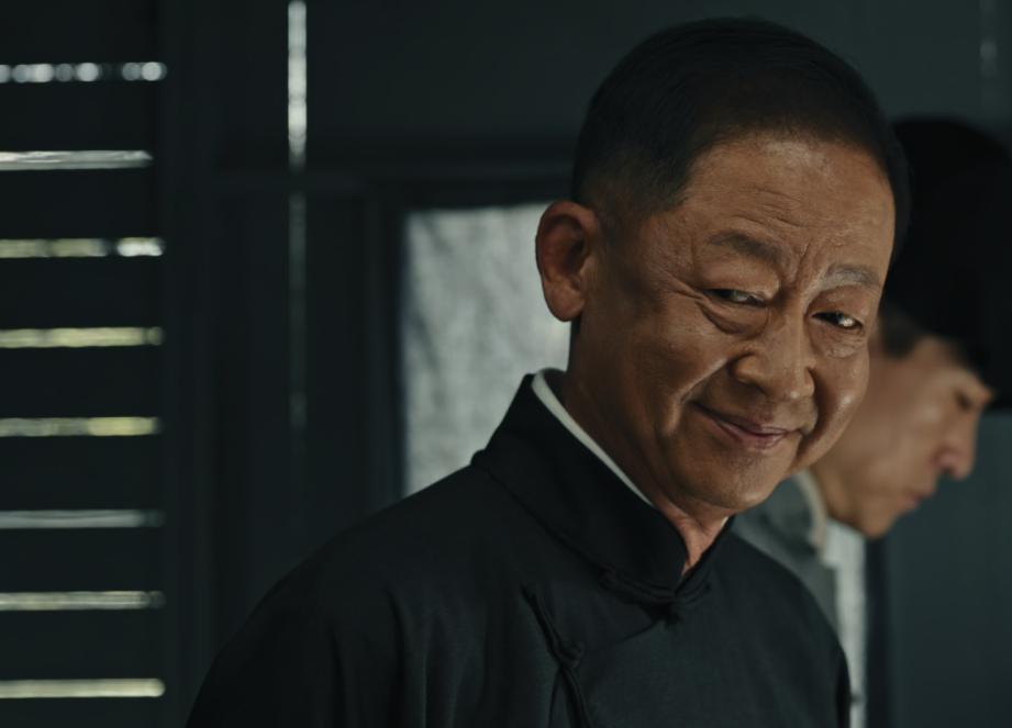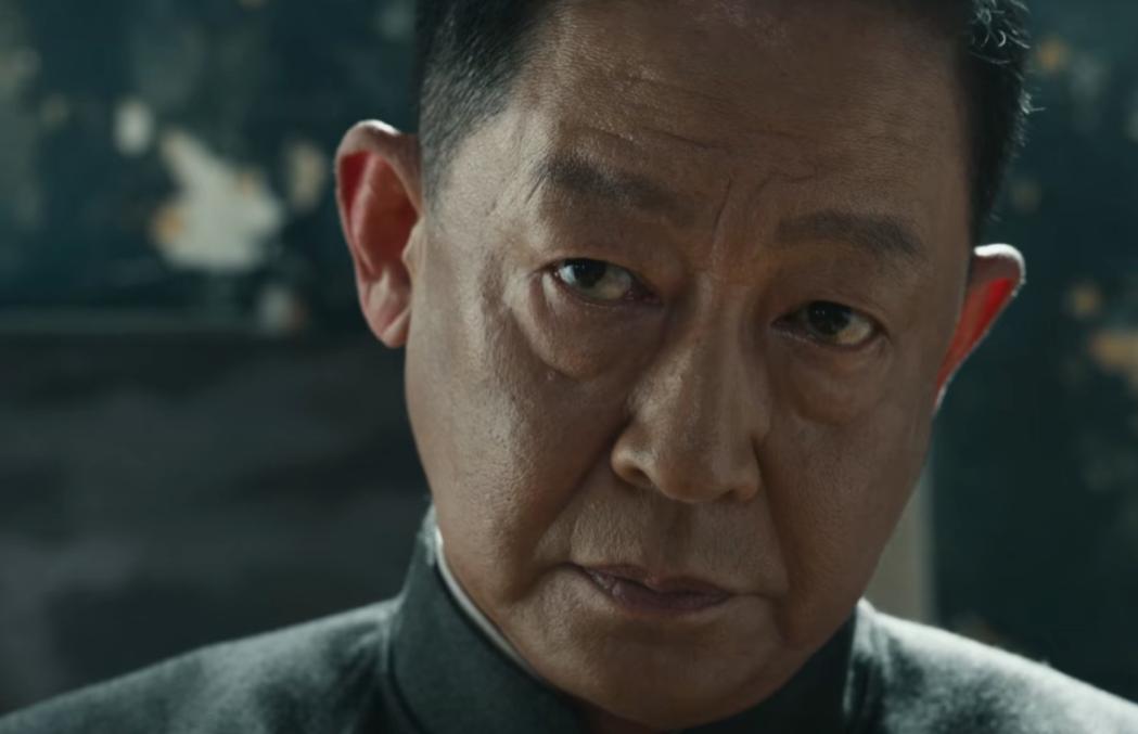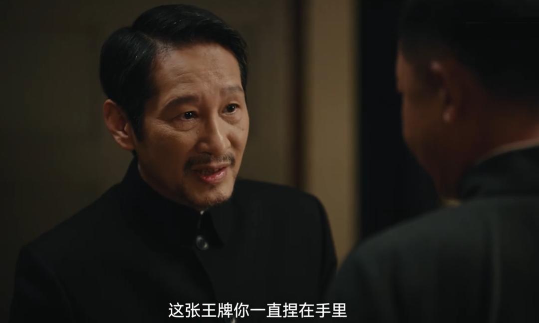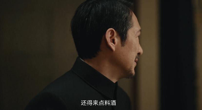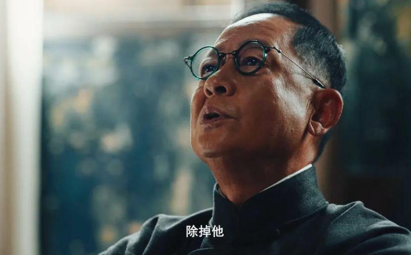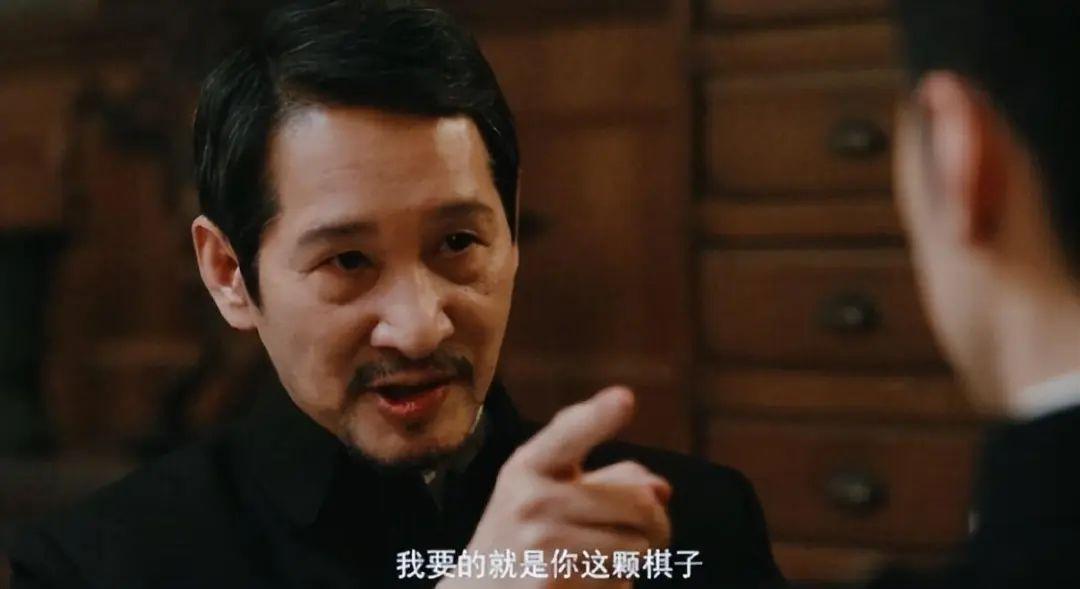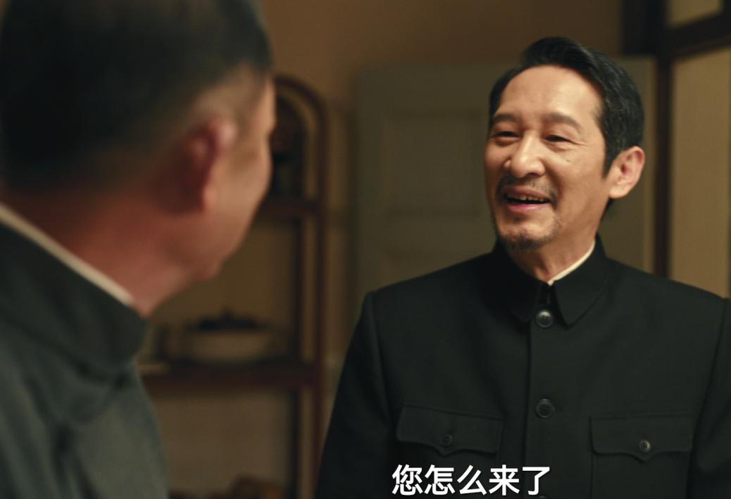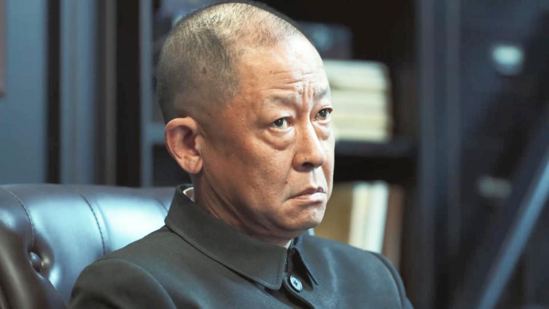 一身黑色的中山裝,頭髮梳得一絲不苟,往那一坐不說一句臺詞,就透出一股壓迫感。