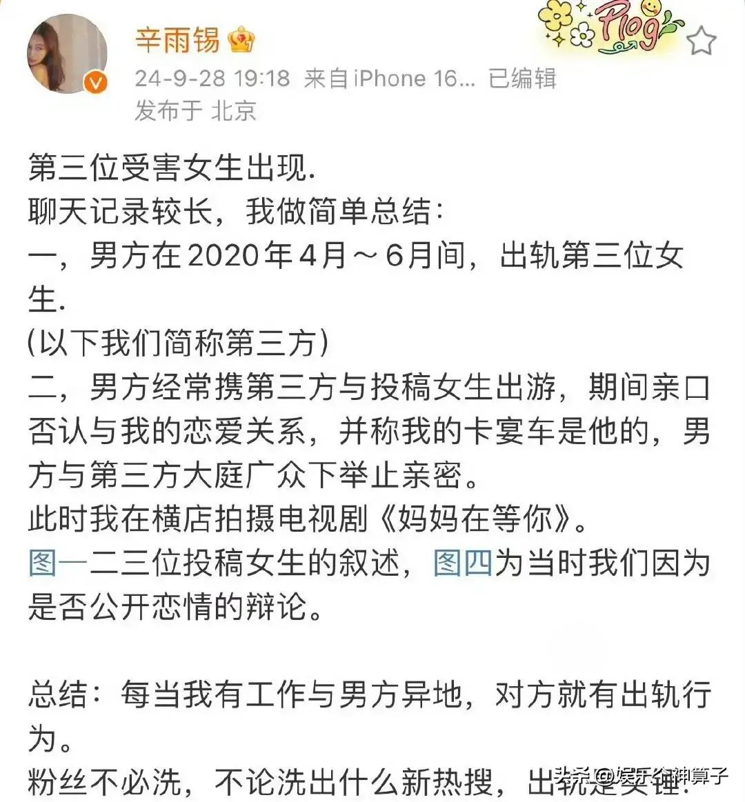 網友還在樂此不疲的喫瓜,萬萬沒想到,辛雨錫再次發文,曝出猛料,並曬出一組截圖,讓人猝不及防。