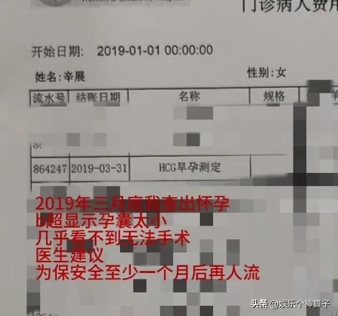 此外,辛雨錫還曬出醫院開具的懷孕證明,上面顯示日期顯示2019年,爲了安全,醫生建議至少一個月以後再做手術,有些術語有點看不懂,不理解什麼意思。