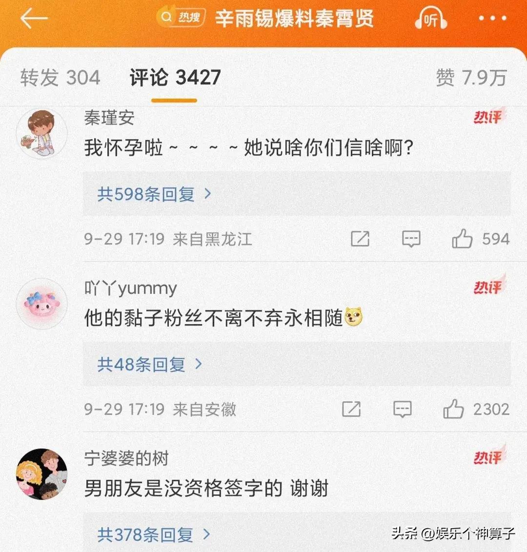 9月29日,秦霄賢登上熱搜,這幾天,疑似前女友辛雨錫在網上各種爆料,讓藝人在大家心目中的人設有點崩了,瞬間引發熱議。