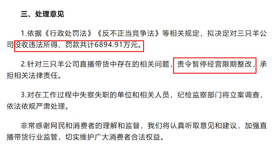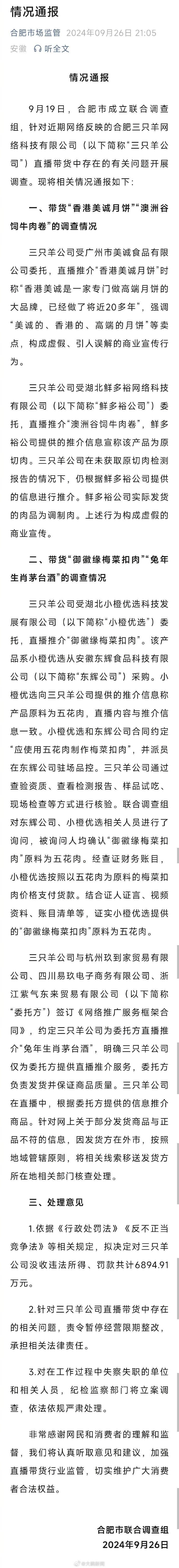 對三隻羊的處理結果來了!合肥聯合調查組發佈通報,小楊哥涼不了