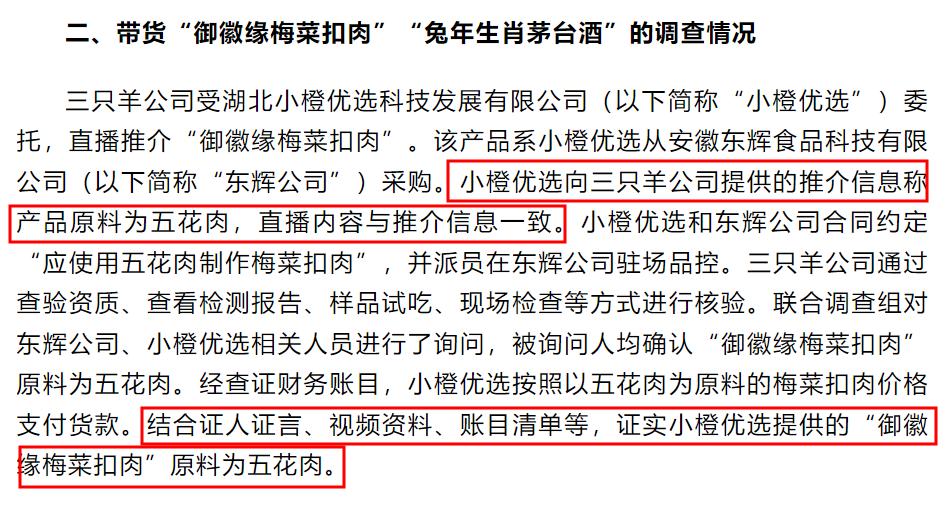 信息三:三隻羊直播推介的“御徽緣梅菜扣肉”的原料是五花肉,並不是網傳的淋巴肉。