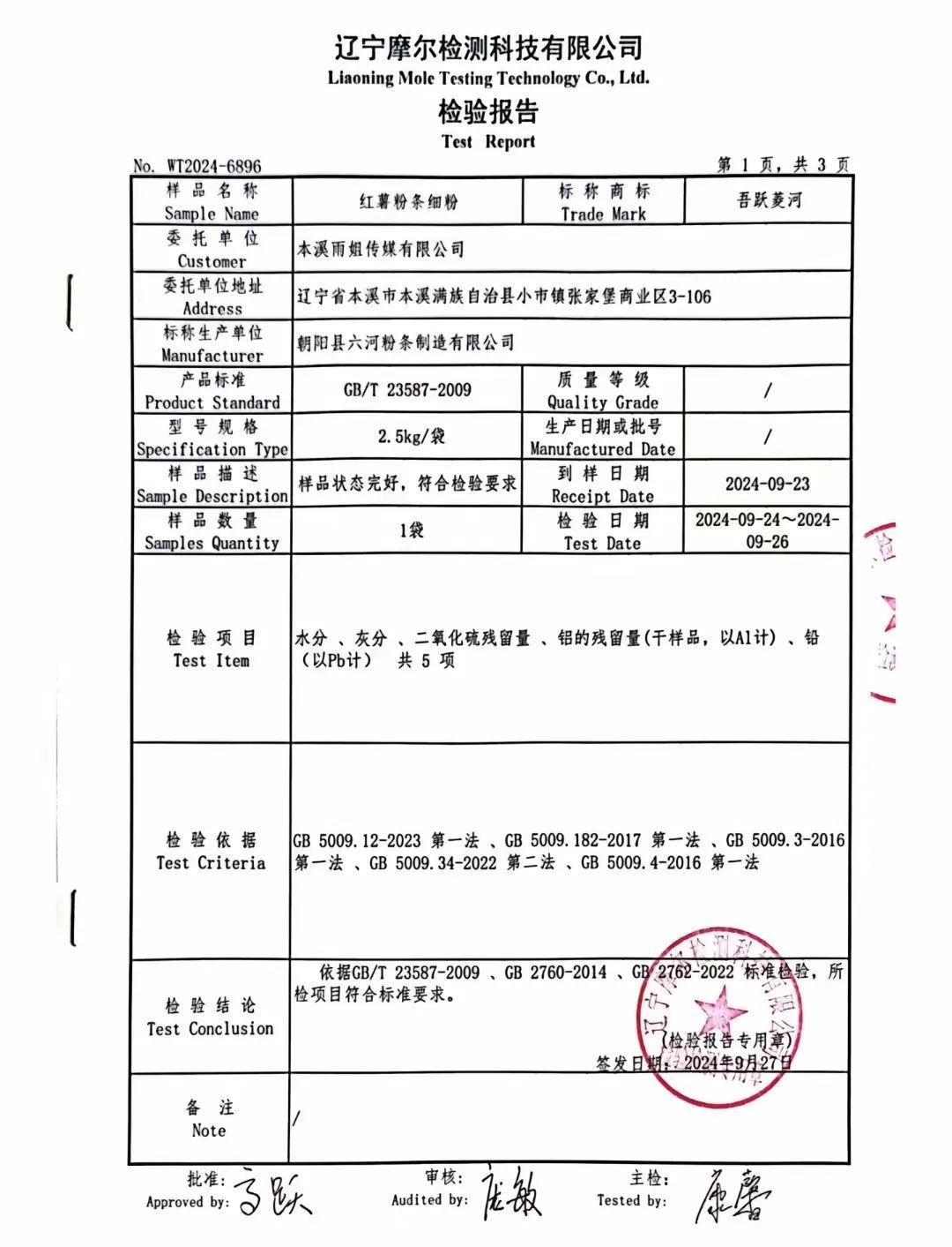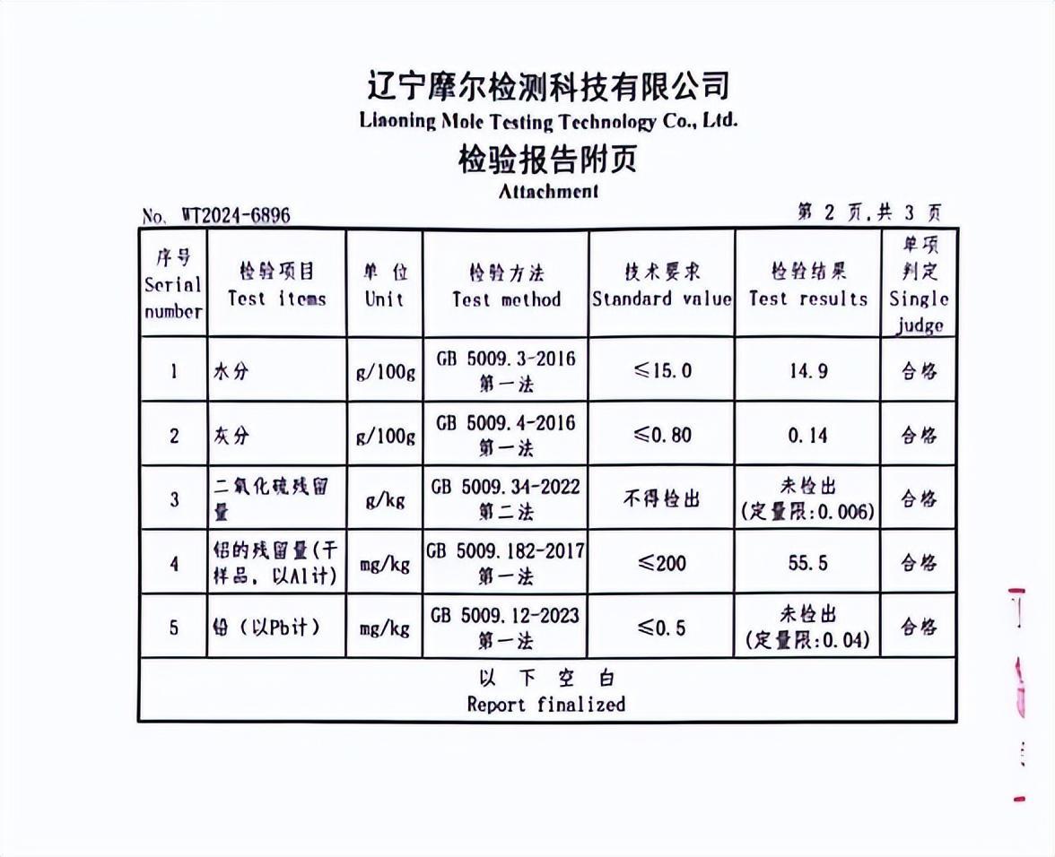 第一點:樣品還在檢測,還未檢測出紅薯粉和木薯粉的成分佔比,但其他檢測項目都檢測出來了,很安全,大家可以放心食用。
