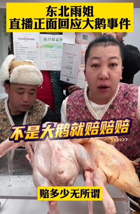 彼時,面對沸沸揚揚的輿論,東北雨姐直播回應了,她一直強調她賣的是真東北大鵝,還曬出了各種證書,她還說她要是賣假鵝,可以假一賠三。