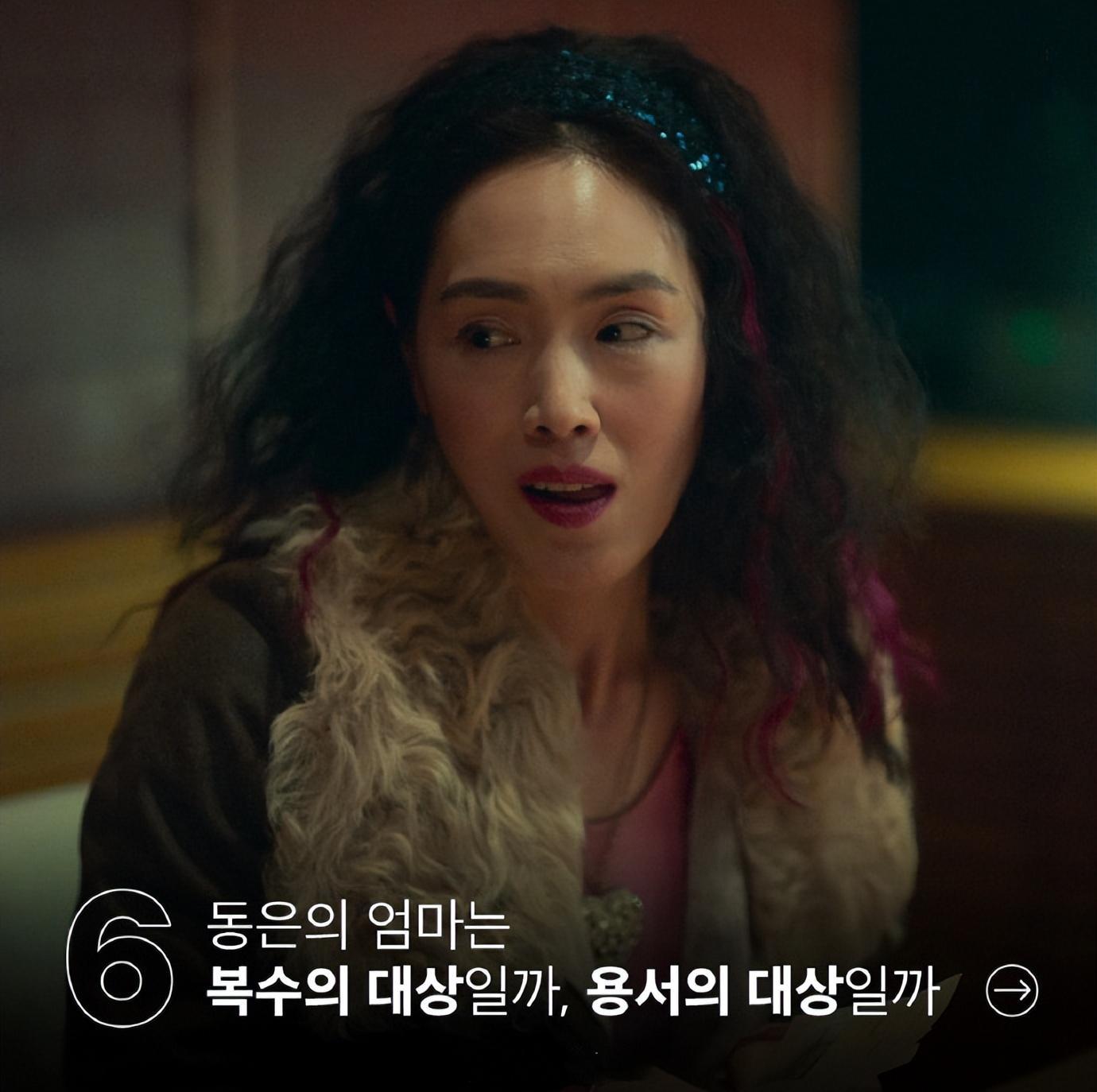 在這部劇中,樸智雅飾演文東恩的母親鄭美姬。在劇中,鄭美姬沒有給文東恩一點母愛,甚至將文東恩一次又一次的推向水深火熱之中。