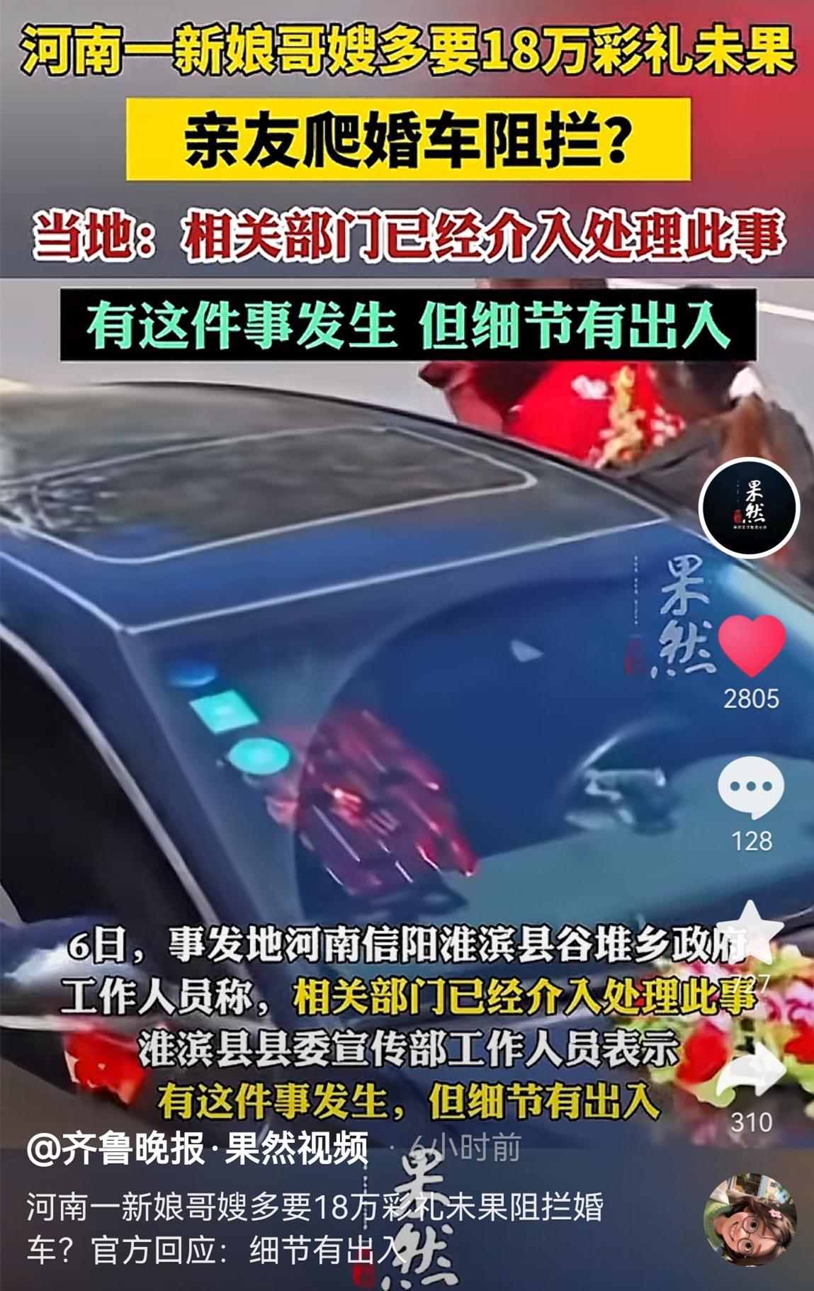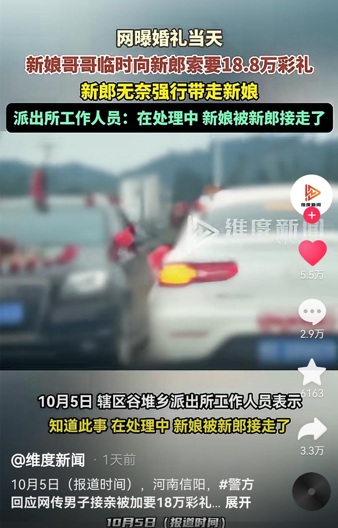 網傳河南一新郎接親被加要18萬元彩禮,新娘行爲惹淚目,官方回應
