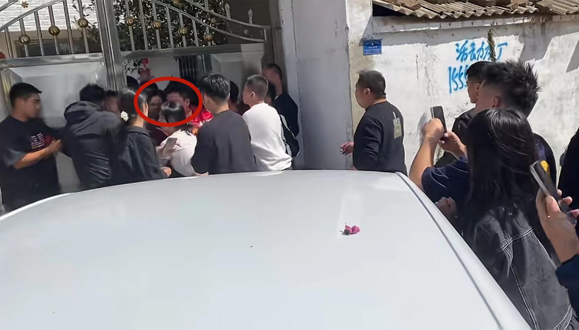 令人沒有想到的是,好不容易將新娘哥哥從車上拉下來了,婚車還沒開出幾步路,疑似新娘家的另一名親屬又攔在了車前。