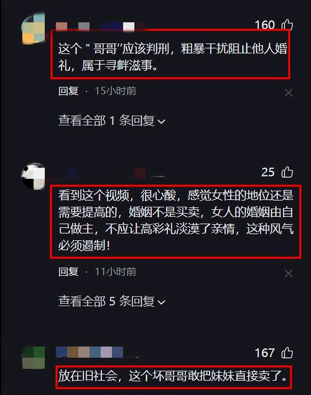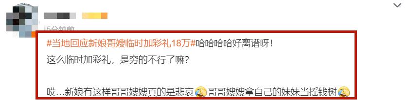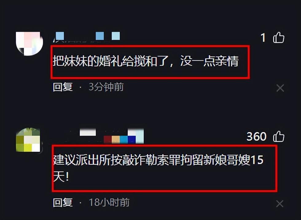 對於此事,網友一邊倒地吐槽新娘哥哥和嫂子,說他們將妹妹當作搖錢樹,直言他們是敲詐勒索。