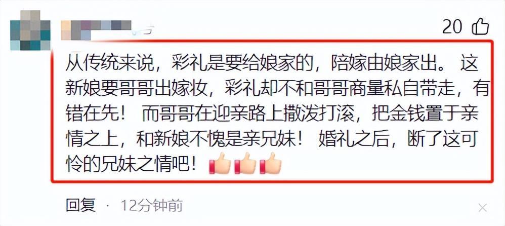 至此整件事情真相大白,並不是網傳的新娘哥哥臨時要加18萬彩禮。