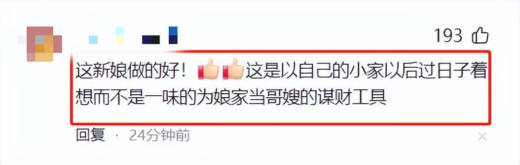 不過,也有網友持不同看法,這部分網友認爲新娘對自己的孃家人知根知底,知道他們的爲人,所以纔沒有將禮金交給他們。