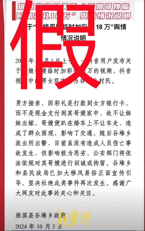 鬧得沸沸揚揚的河南信陽新郎接親,新娘哥哥臨時要加18萬元彩禮的事件終於真相大白了。