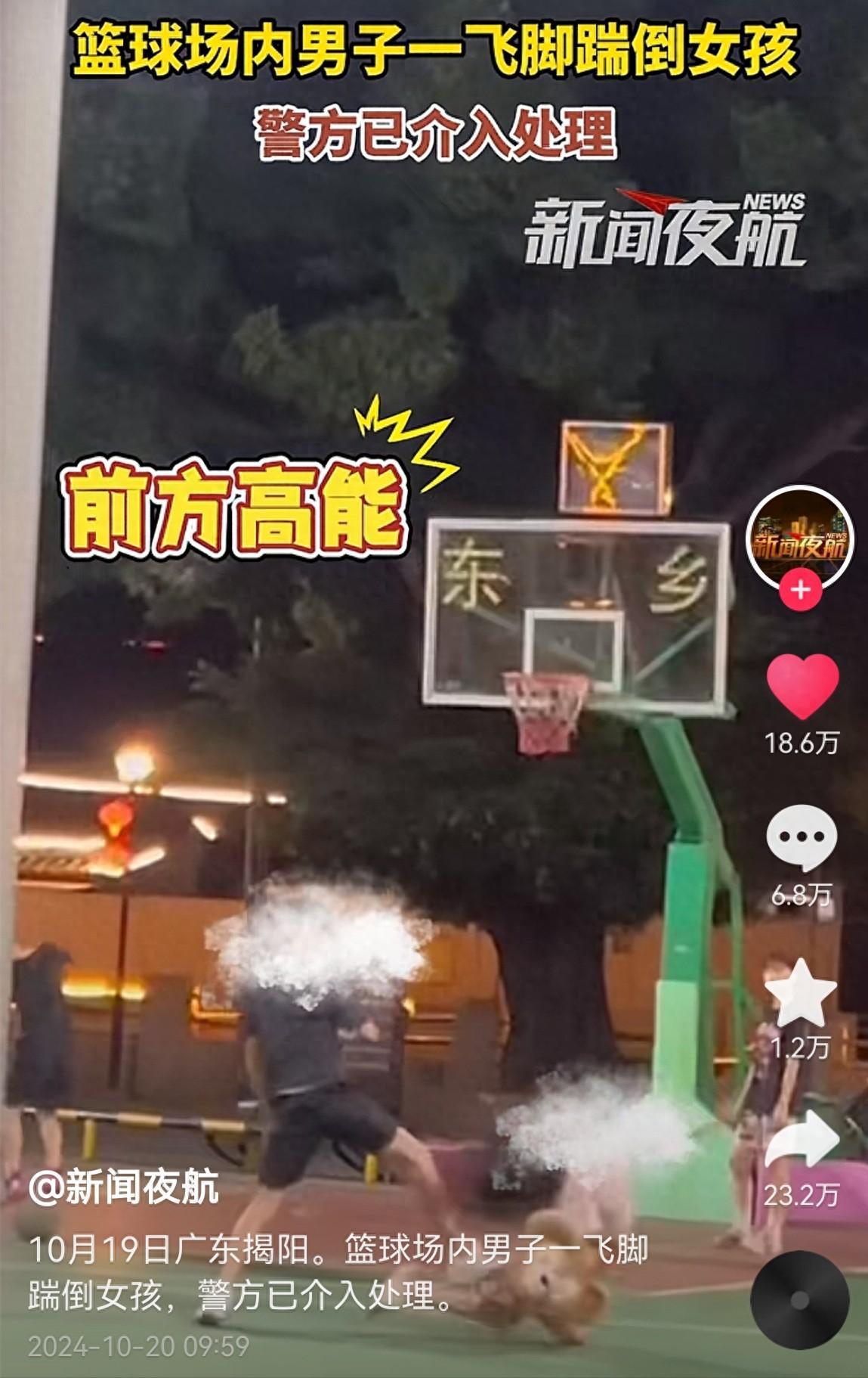 男子籃球場飛踹女孩後續:警方通報,雙方關係曝光,果然不簡單