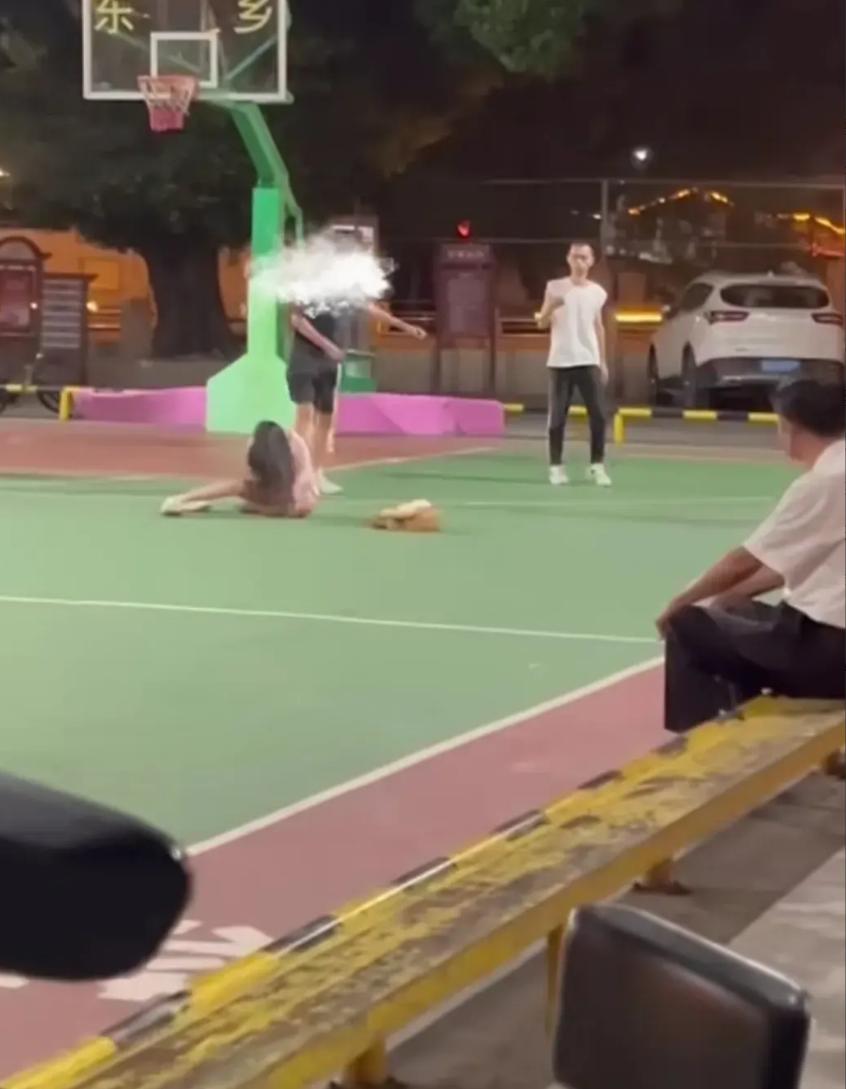 根據網傳信息,10月19日晚在廣東揭陽的某個籃球場,一名女孩被一名男子踹倒在地,受傷痛哭。