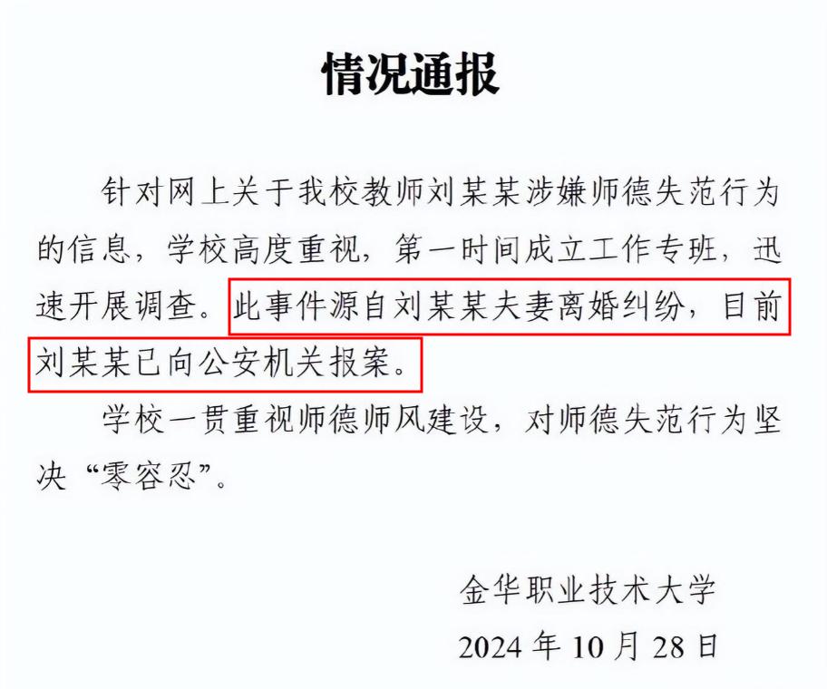 因爲此事引發熱議,面對沸沸揚揚的輿論,金華職業技術大學發佈了情況通報。