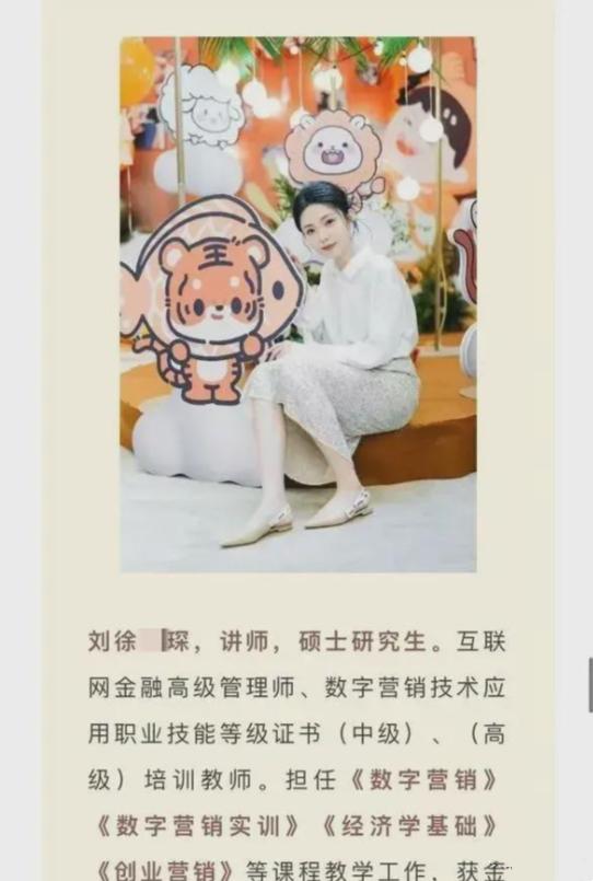 女老師姓劉,是金華職業技術大學的講師,從曝光的女老師照片中可以看到,她身材很好,長得很漂亮。