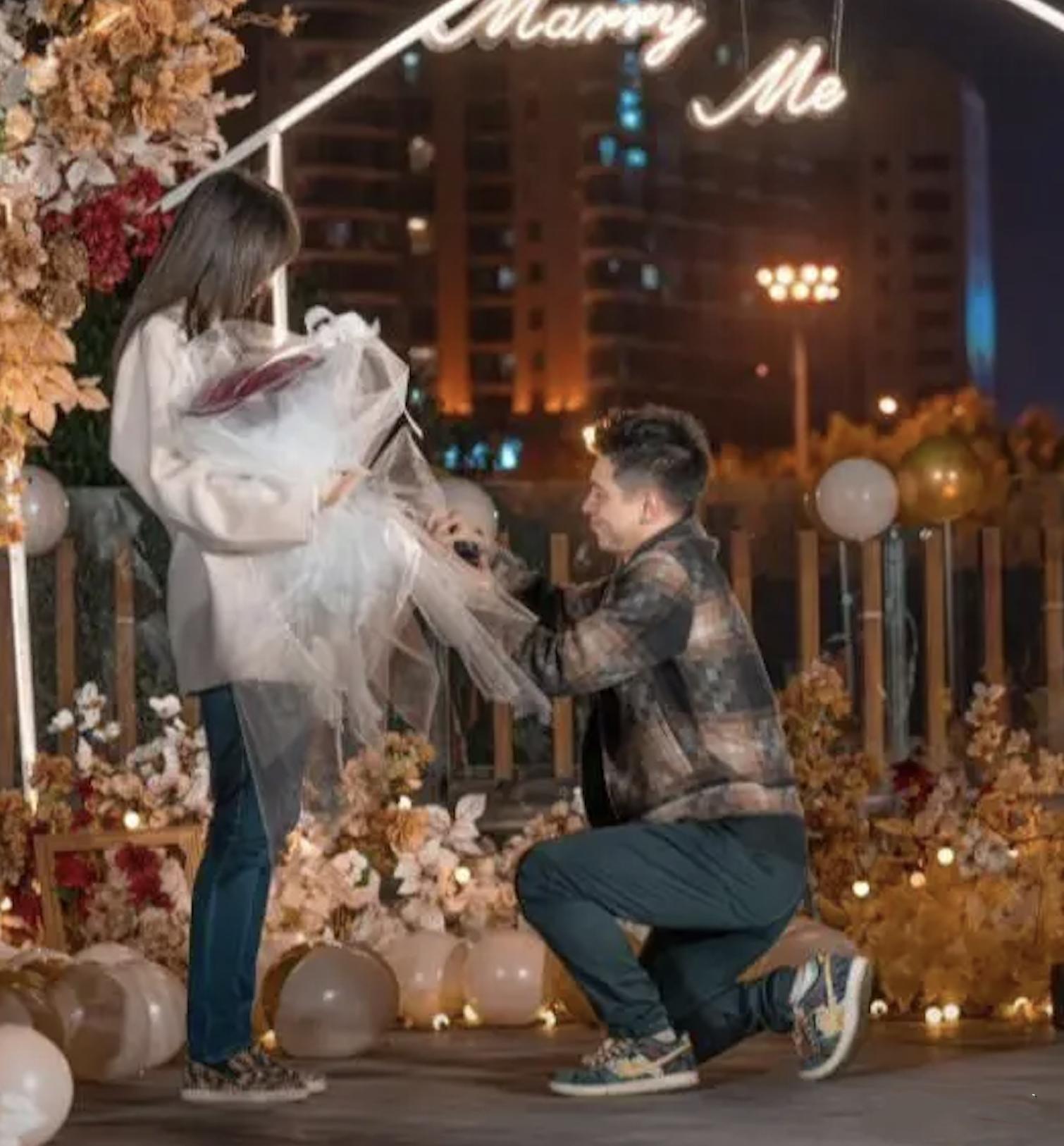 此外,男方還曬出了記錄他們當初幸福的求婚照和婚紗照。
