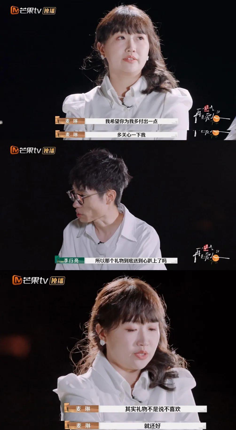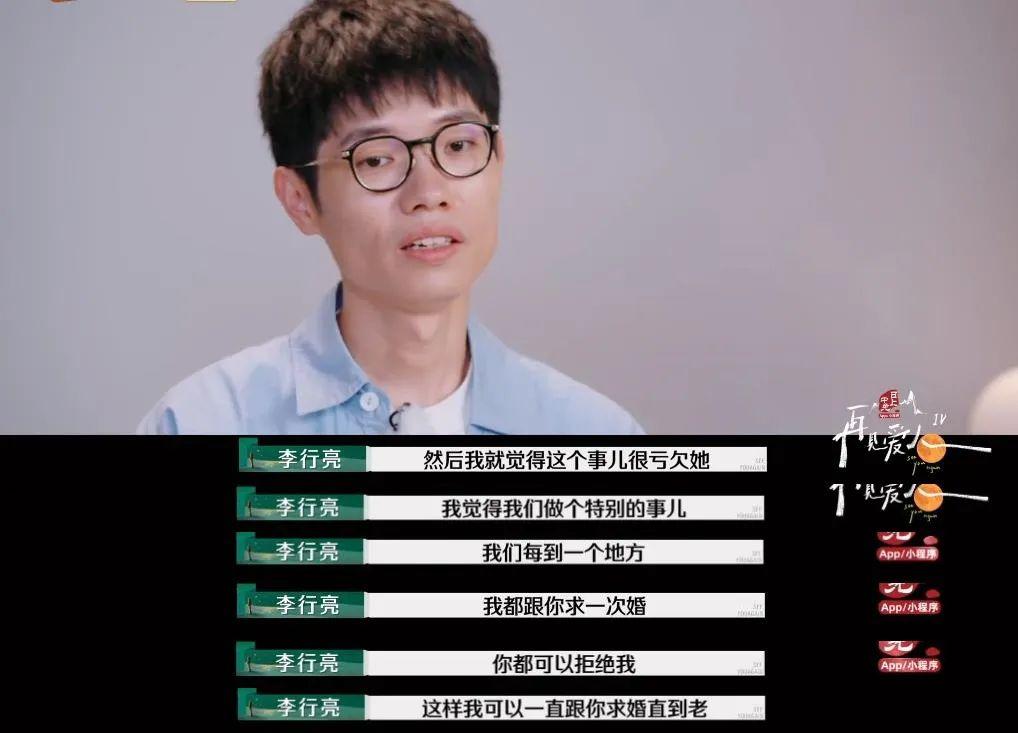 節目中,李行亮說到,他每去一個地方都會給麥琳求婚一次,而麥琳每一次都可以拒絕他。