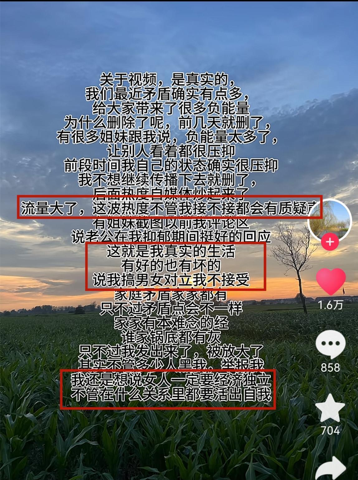 畢竟因爲她的視頻,她的丈夫遭遇了網友吐槽,但即使如此,她丈夫也沒有發聲譴責妻子。