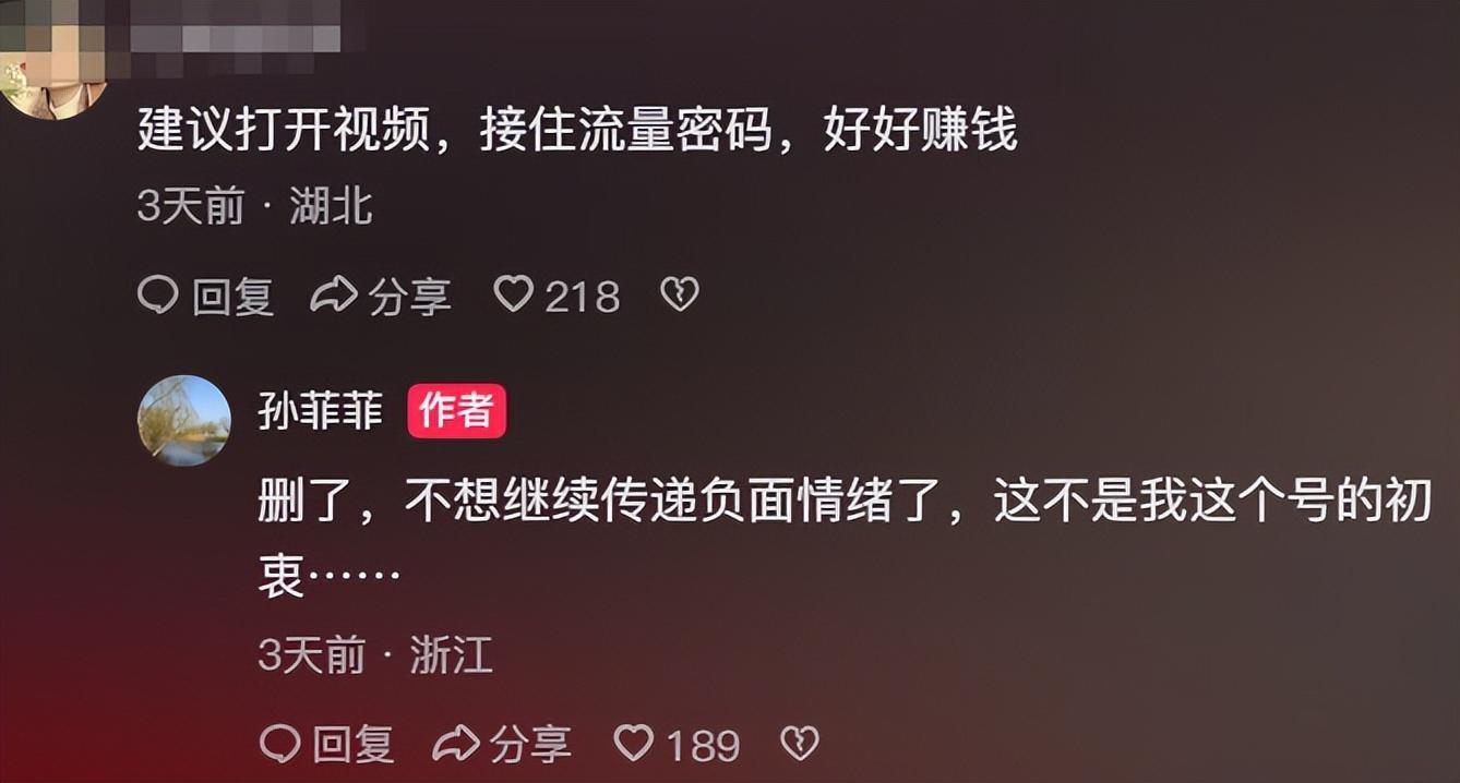 信息二:刪除視頻是因爲視頻負能量,讓人看得壓抑。