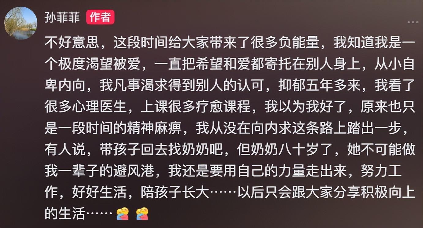 希望夫妻之間相互理解,相互尊重,相互支持,也希望女博主能夠早日擊敗抑鬱症,過上正常的生活。
