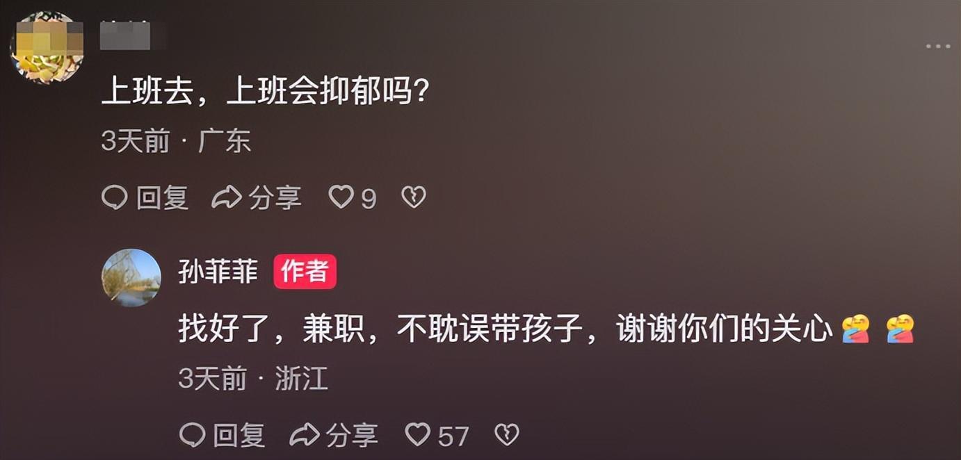 信息三:女博主已經不做全職媽媽了,她找了一份兼職工作,能夠賺錢,還能有時間帶孩子。