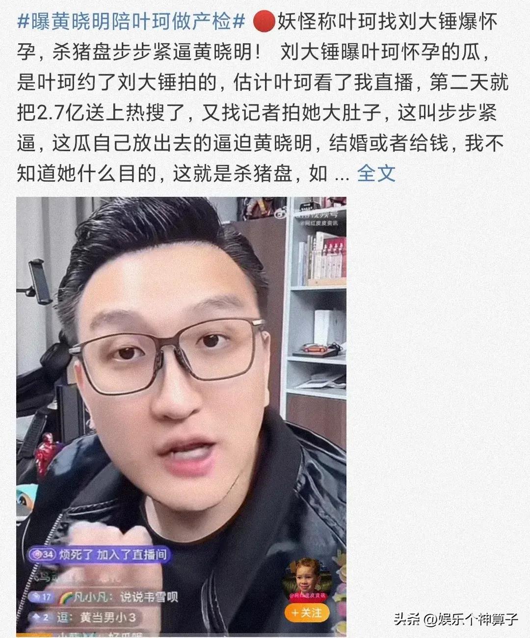 後續,網上各種爆料,包括黃曉明和葉珂鬧分手,女友索要分手費的傳聞,狗仔就迫不及待的放出拍到的視頻,博主妖怪在直播中透露,說葉珂事先聯繫劉大錘,做產檢時提前到場,以便拍攝。